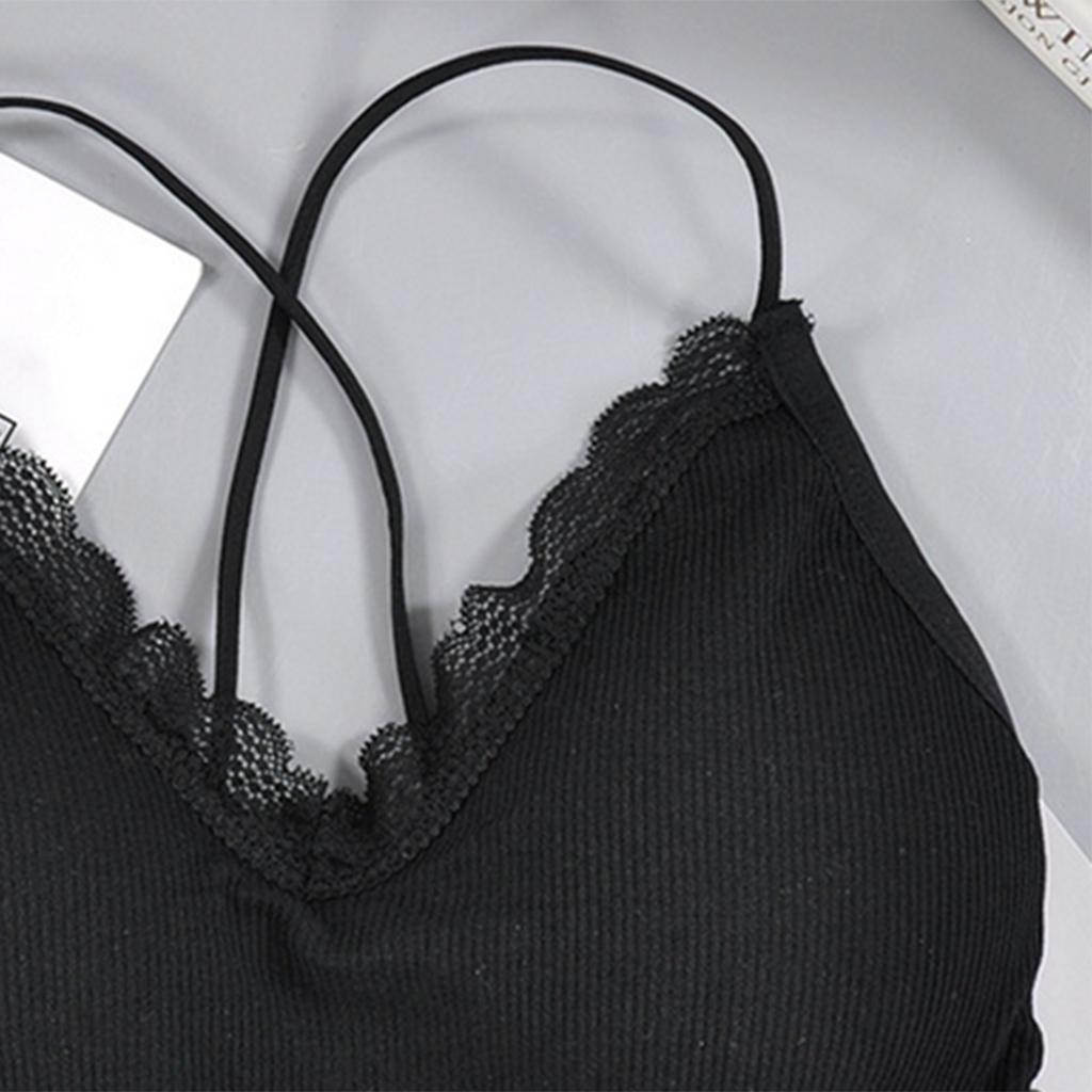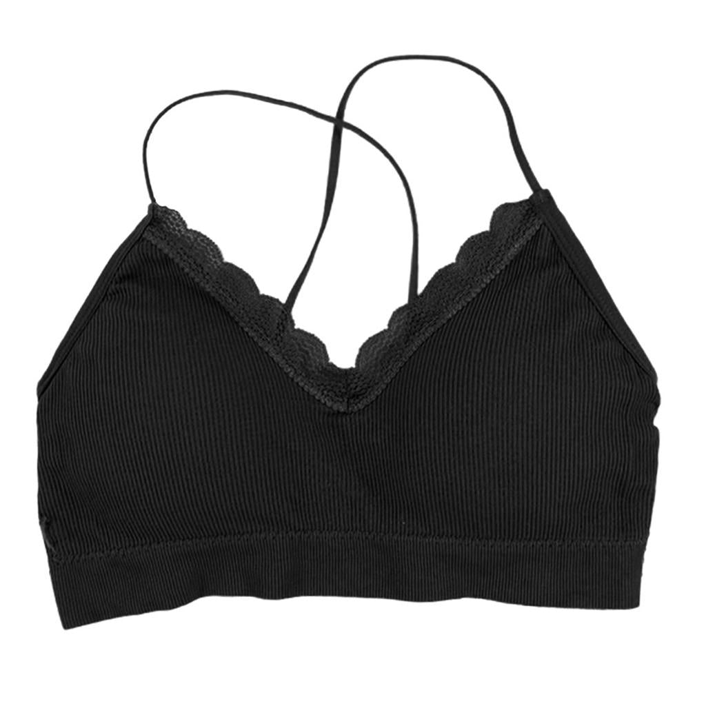 Maxbell Women Bralette Spaghetti Straps Comfort Bra Padded Camisole Crop Top Black