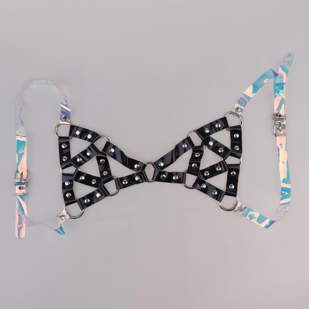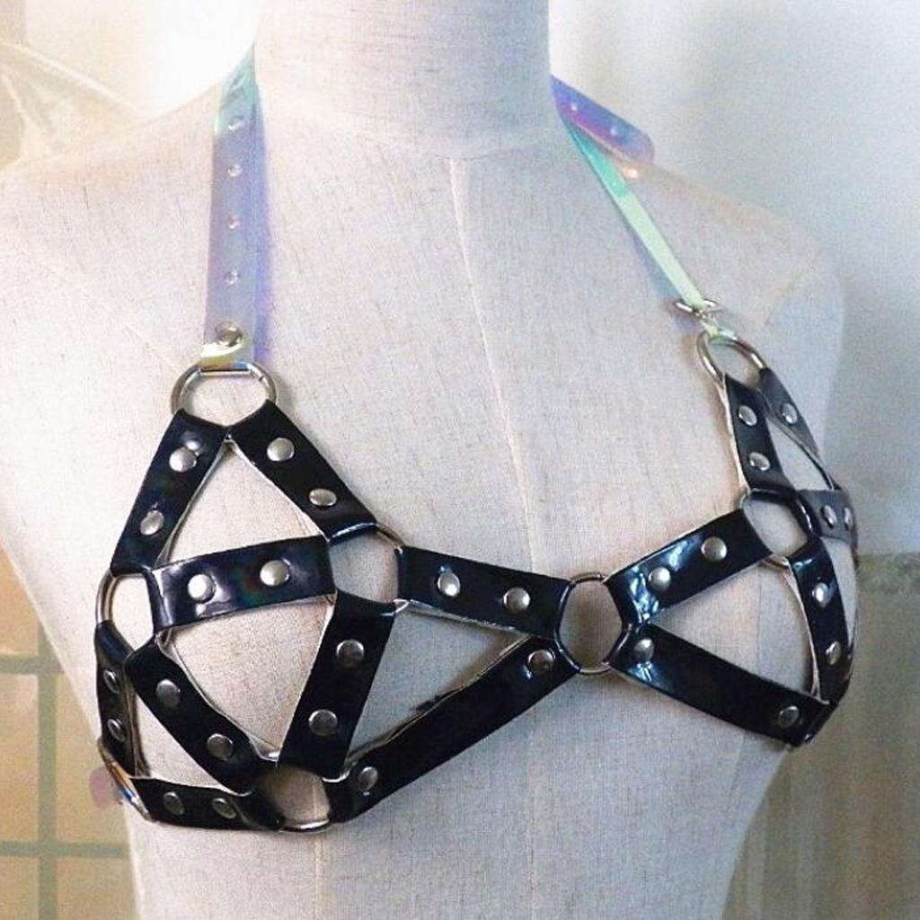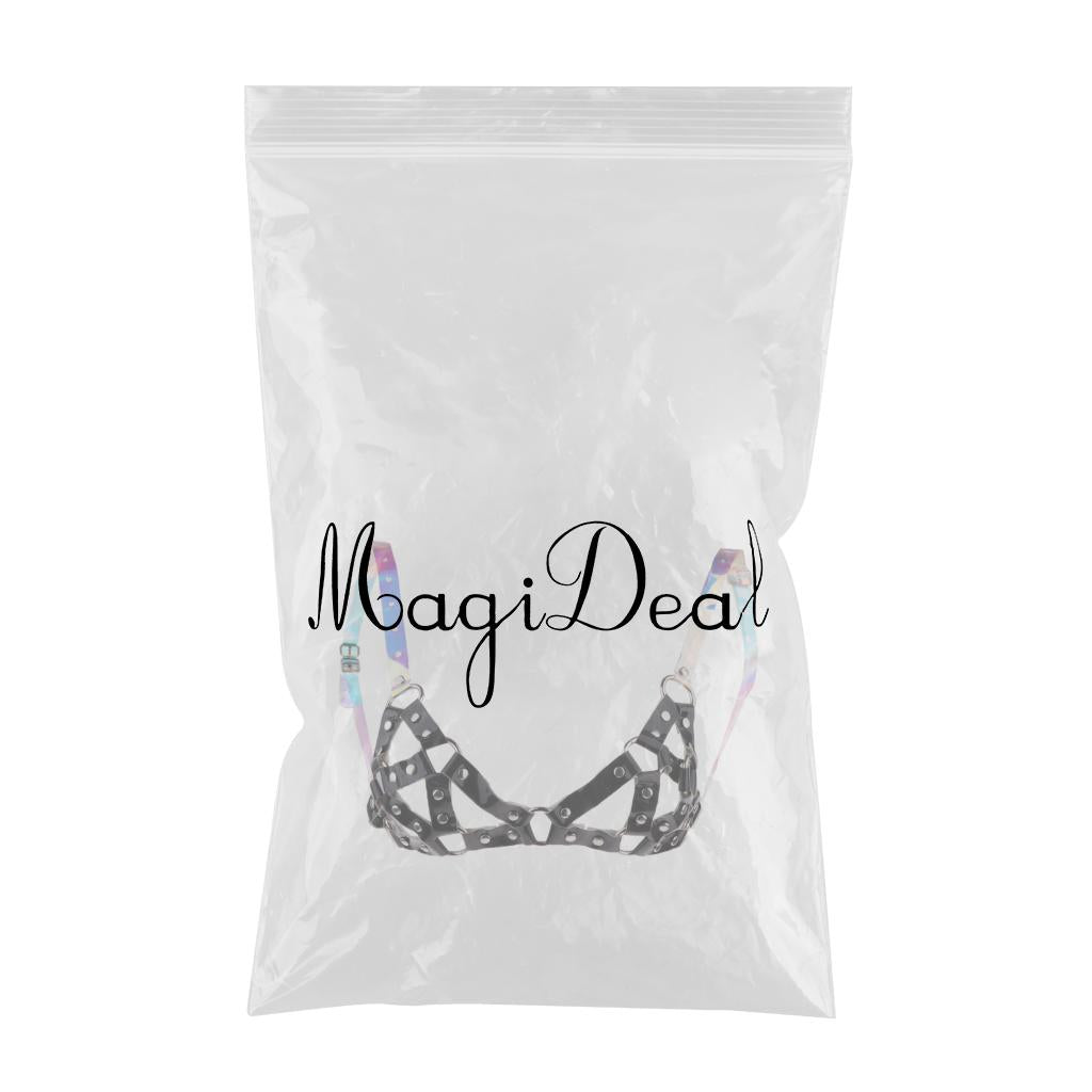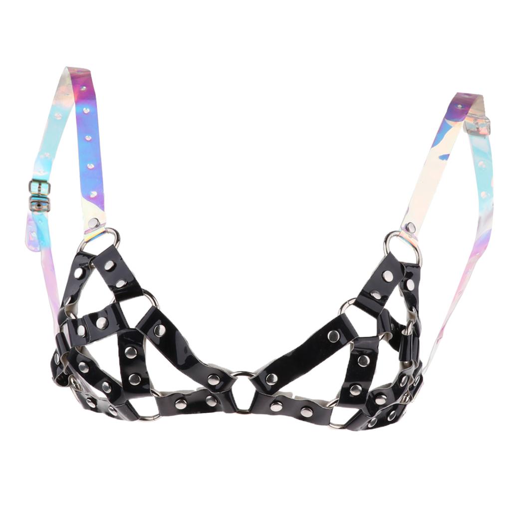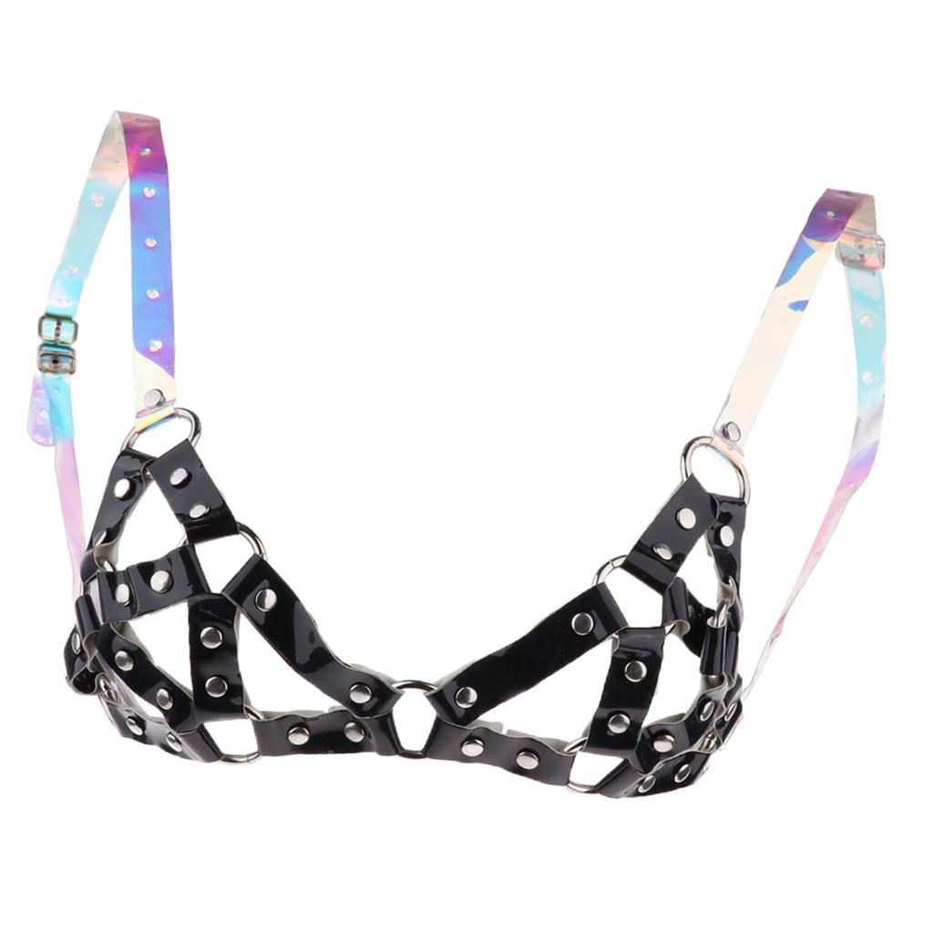 Maxbell Women Harness Adjustable Cage Bra Leather Hollow Out Strappy Lingerie Black