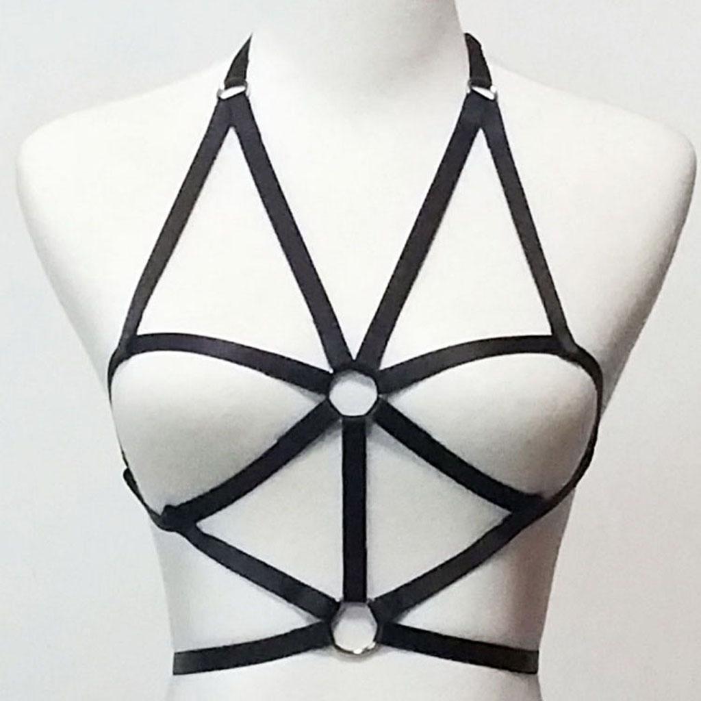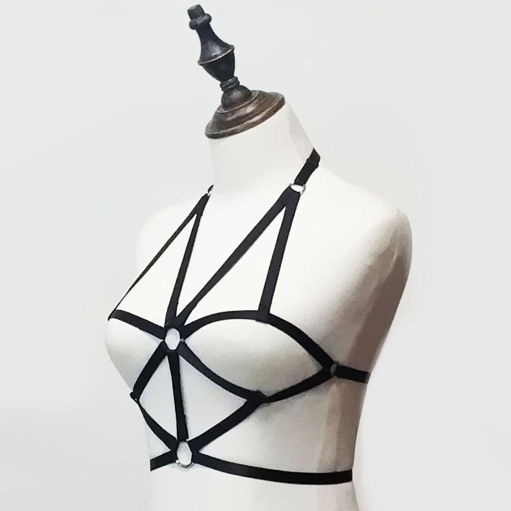 Maxbell Women Harness Bra Cage Bra Crop Top Black Strappy Sexy Costume Bra for Lady
