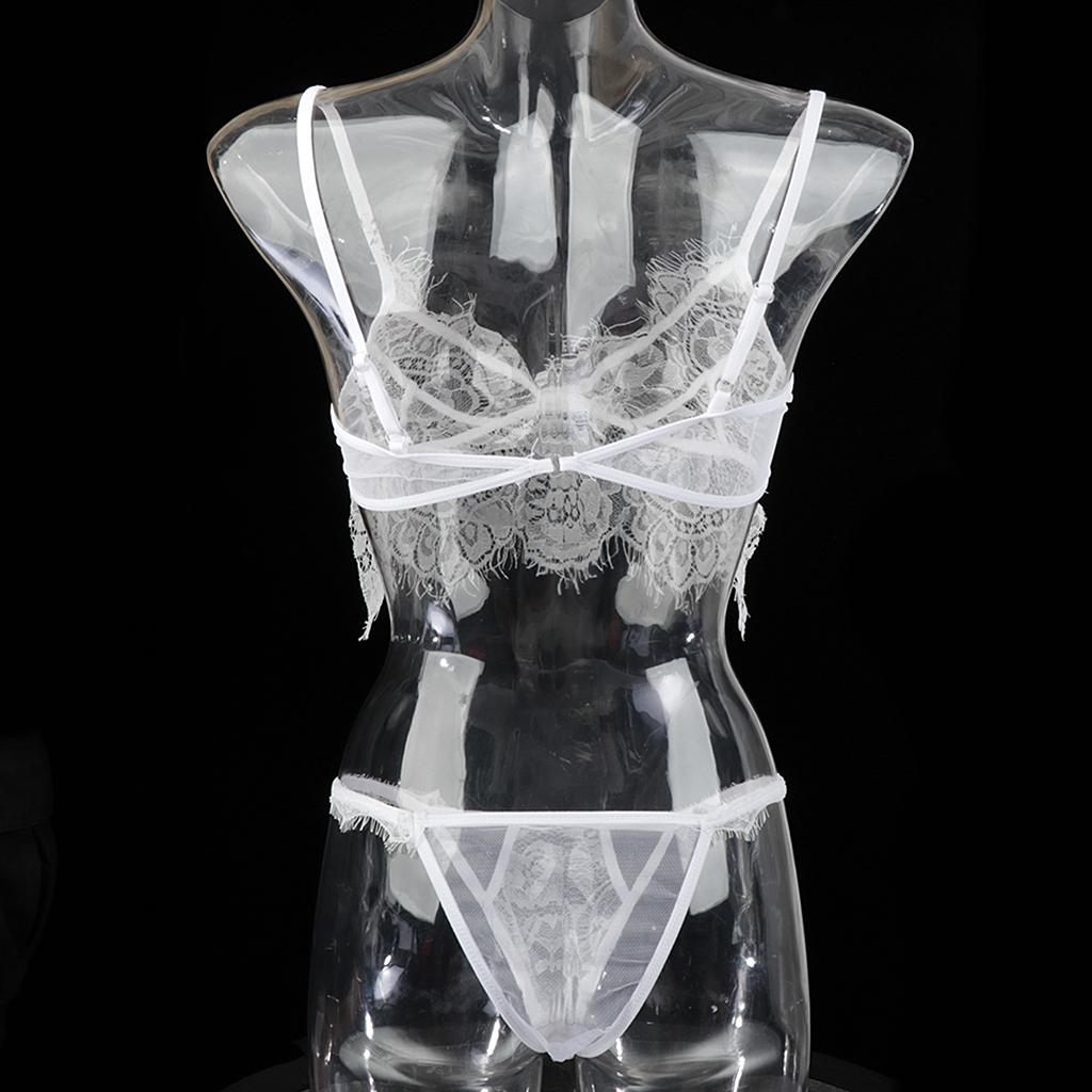 Maxbell Women Sexy Lace Bra Panty Lingerie Sleepwear Babydoll Bodysuits L White