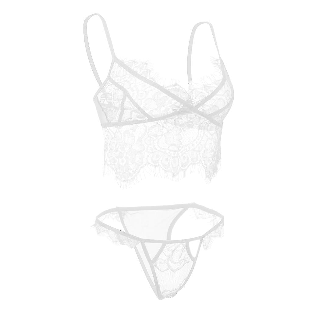 Maxbell Women Sexy Lace Bra Panty Lingerie Sleepwear Babydoll Bodysuits M White