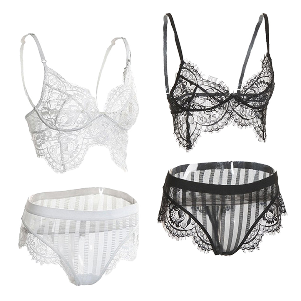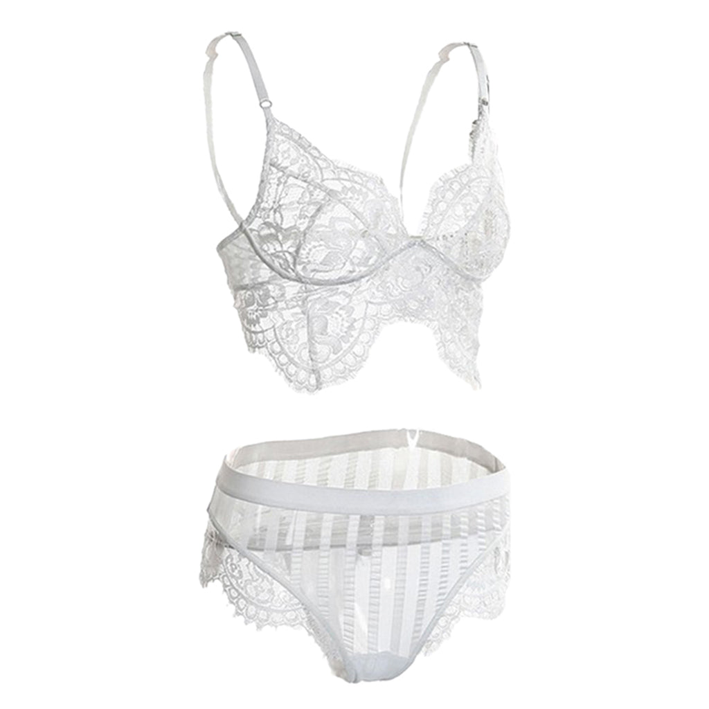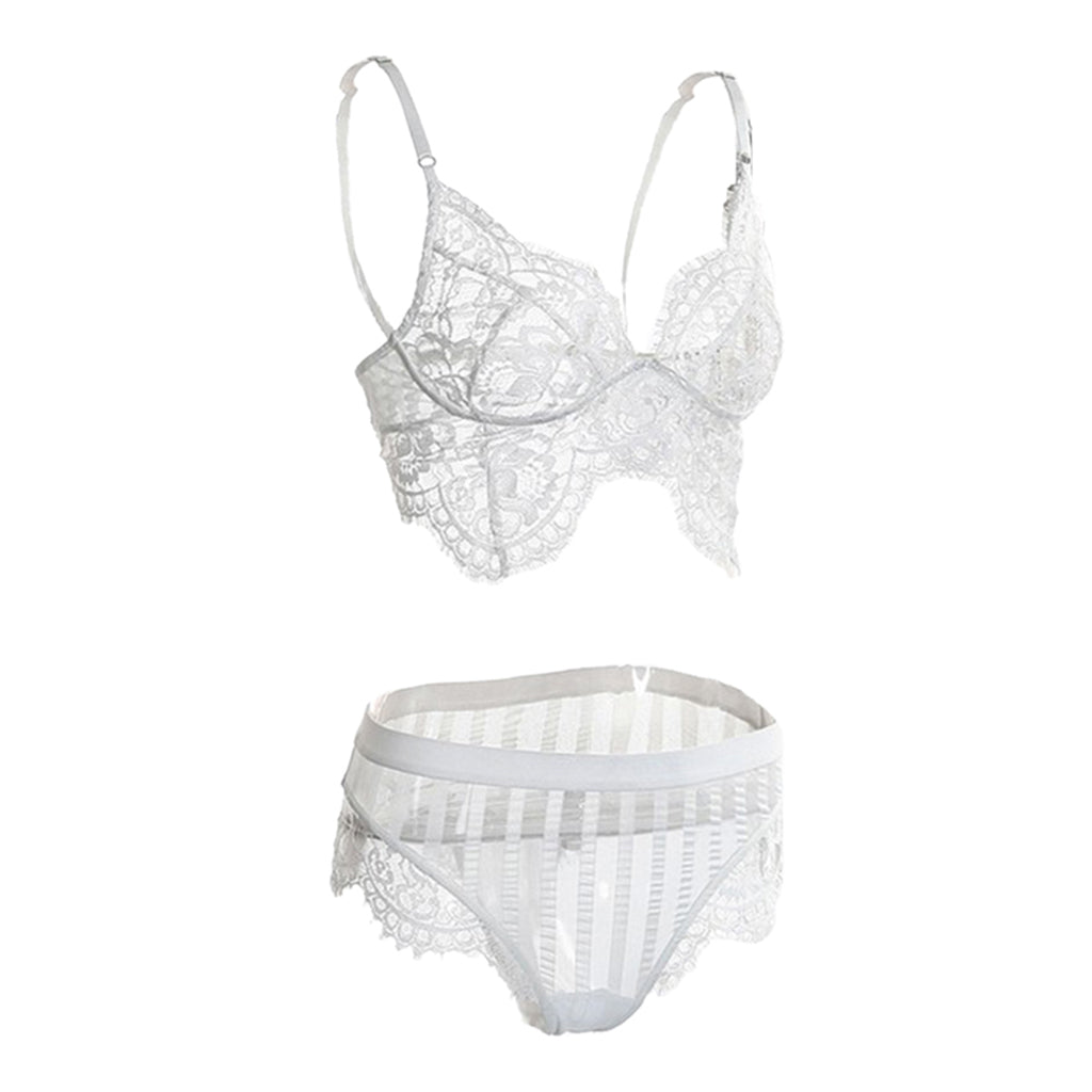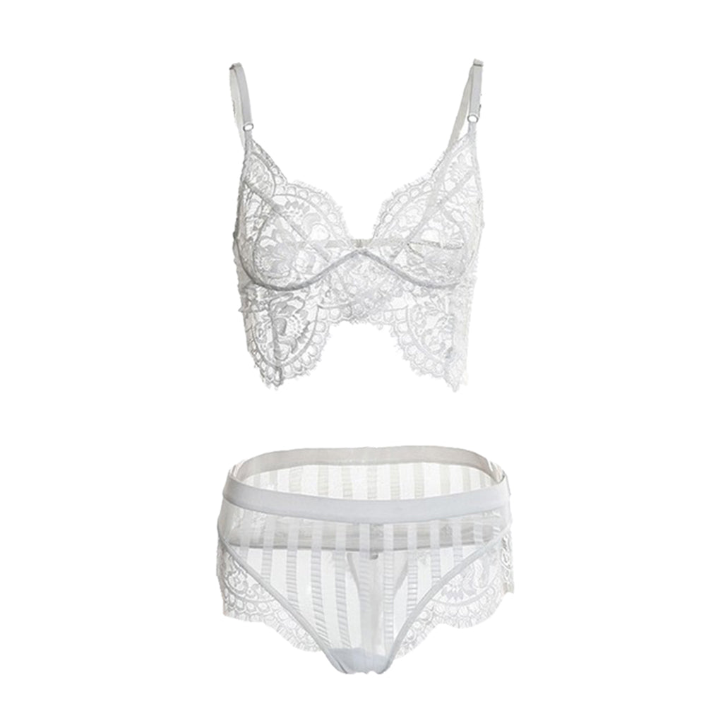 Maxbell Women Sexy White Lace Bra Panty G-String Lingerie Sleepwear Bodysuits S
