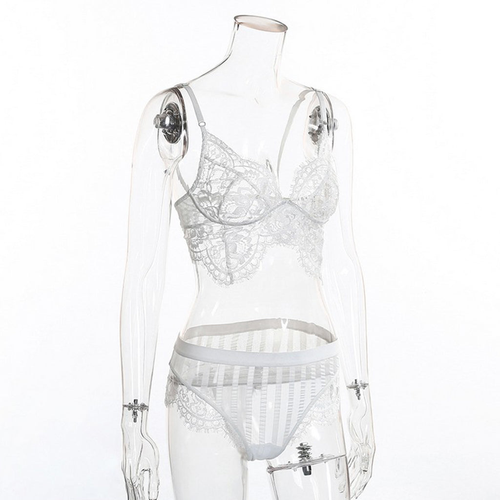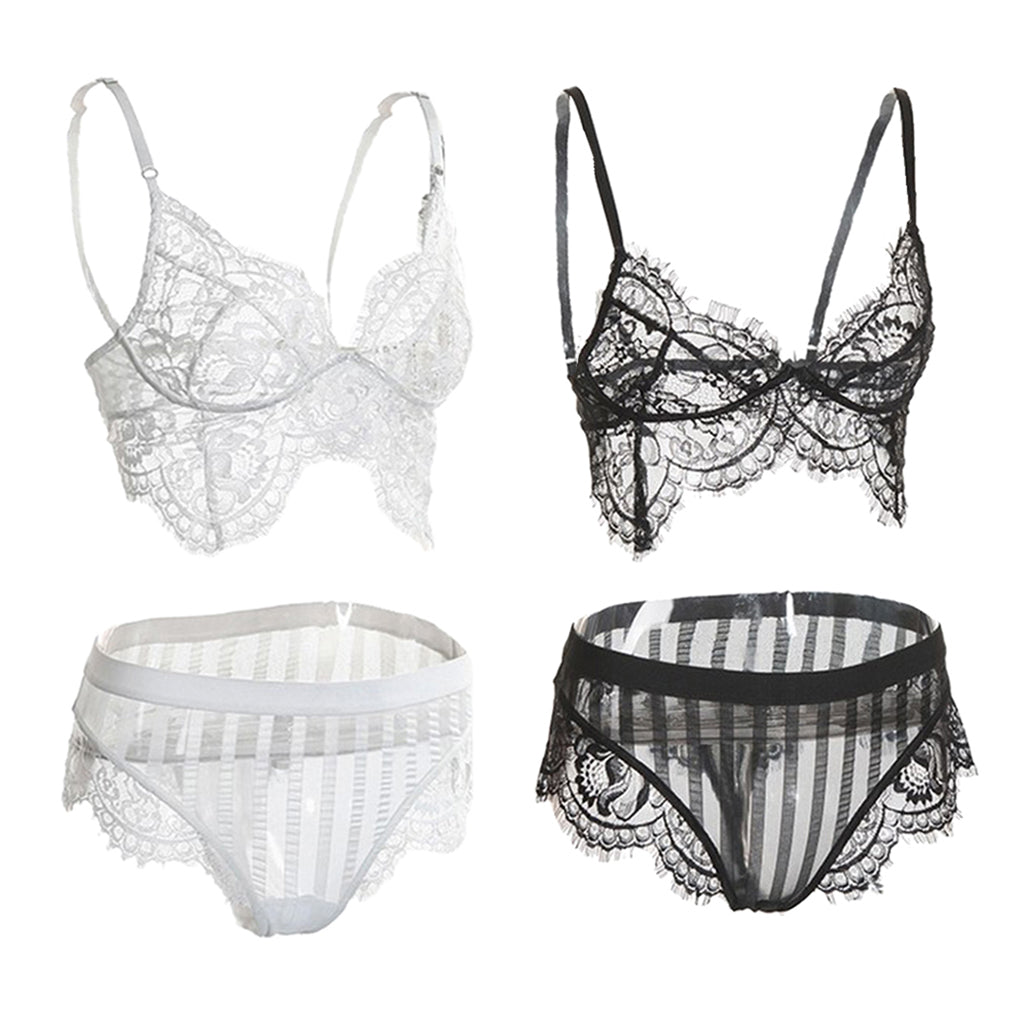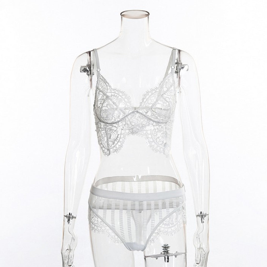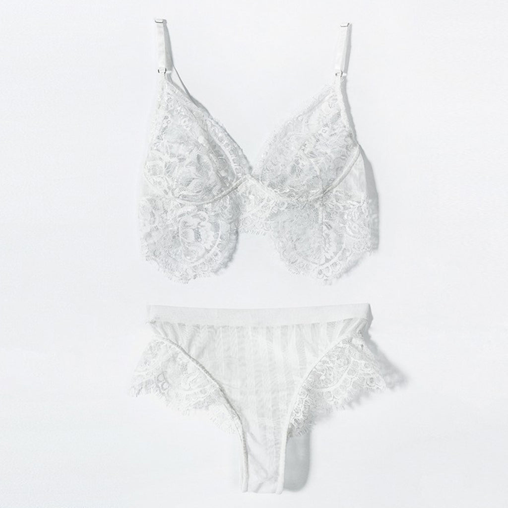 Maxbell Women Sexy White Lace Bra Panty G-String Lingerie Sleepwear Bodysuits S
