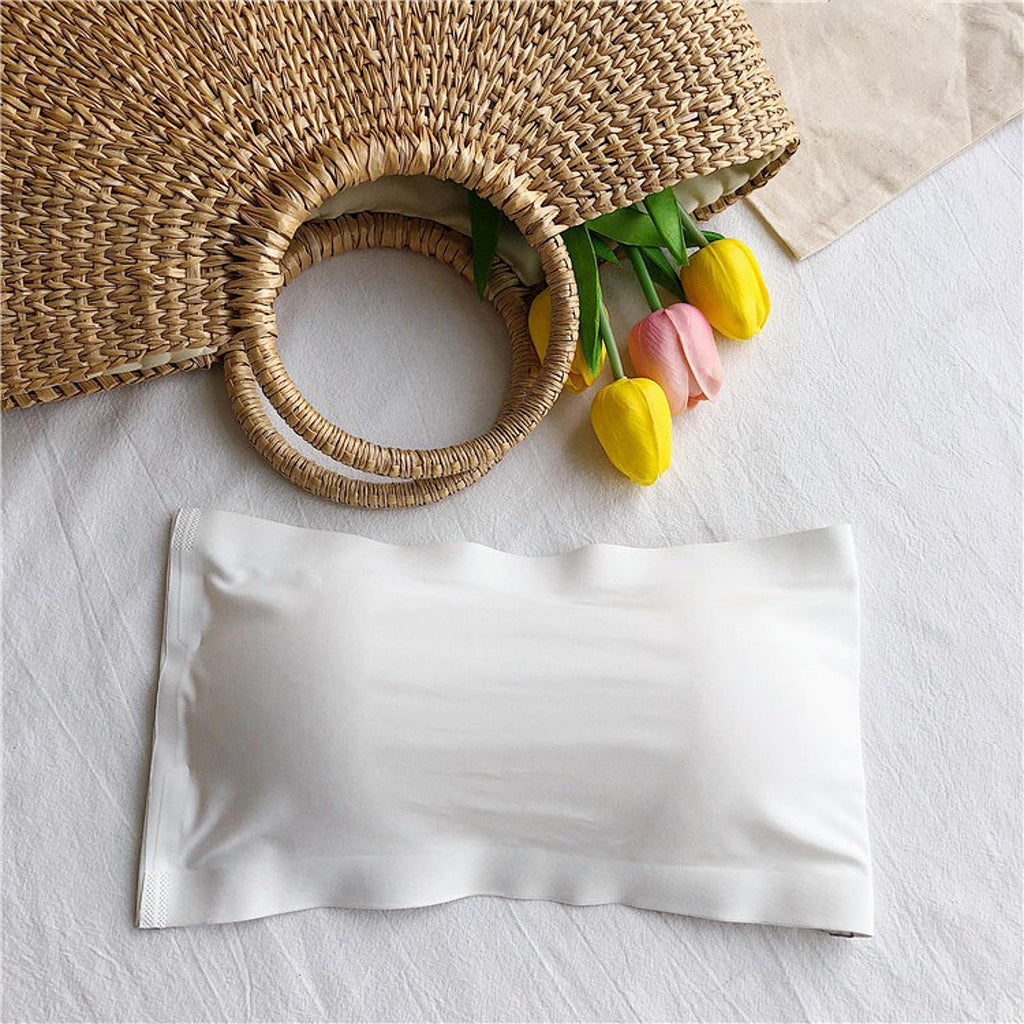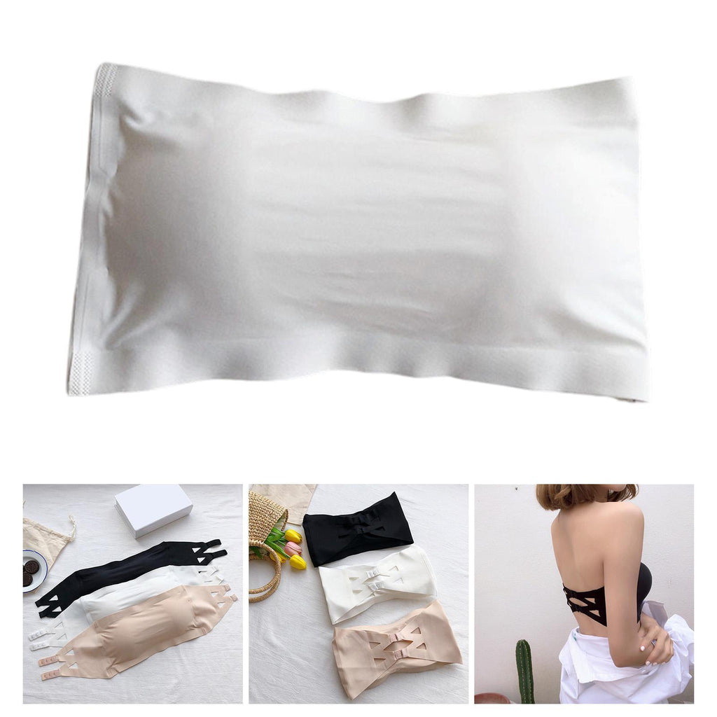 Maxbell Women Strapless Tube Top Soft Summer Invisible Bra for Sports Swimsuit Women White
