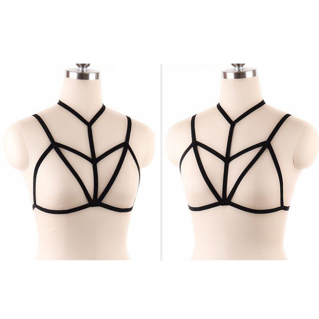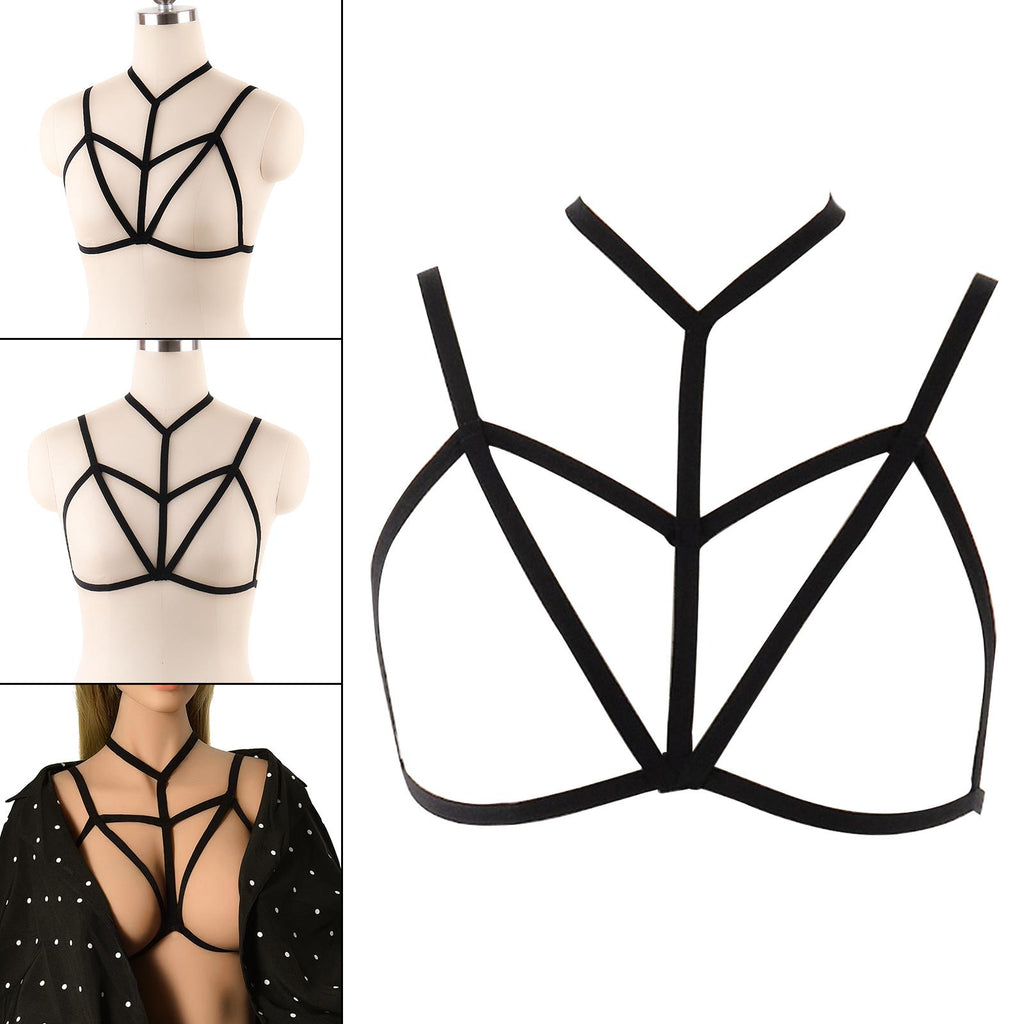 Women Harness Bra Elastic Cupless Cage Bra Strappy Hollow Out