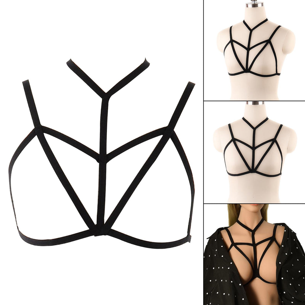 Maxbell Womens Strappy Harness Bra Hollow Out Cage Bra Cupless Bra Nightclub Wear