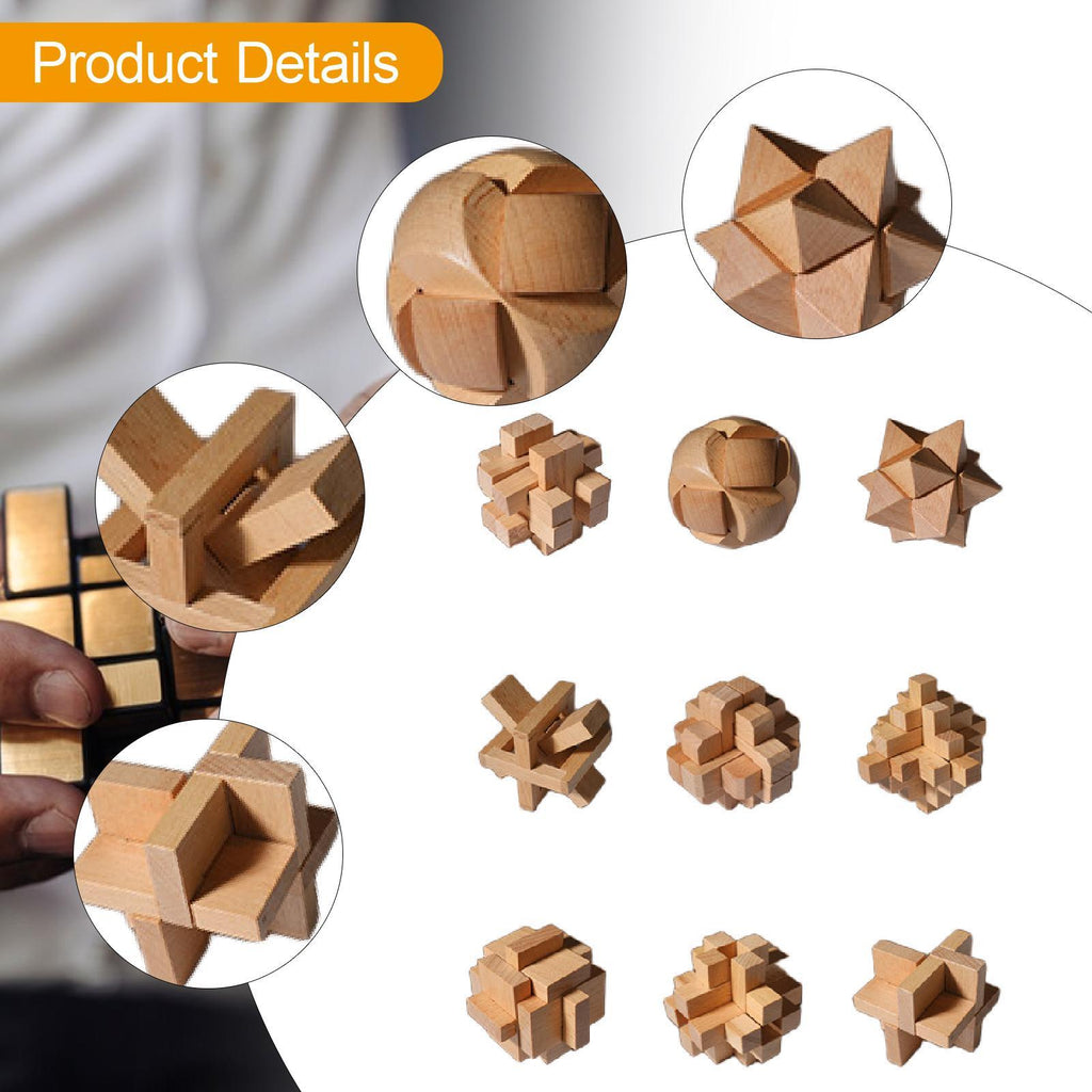 【Educational and Fun】: This Wooden Brain Teaser Puzzle Set is designed to enhance children's hand eye coordination, logical thinking, and intelligence through engaging play. It's a blend of fun and learning for kids