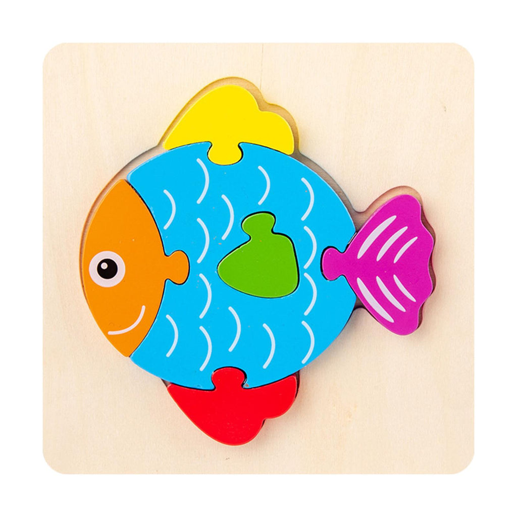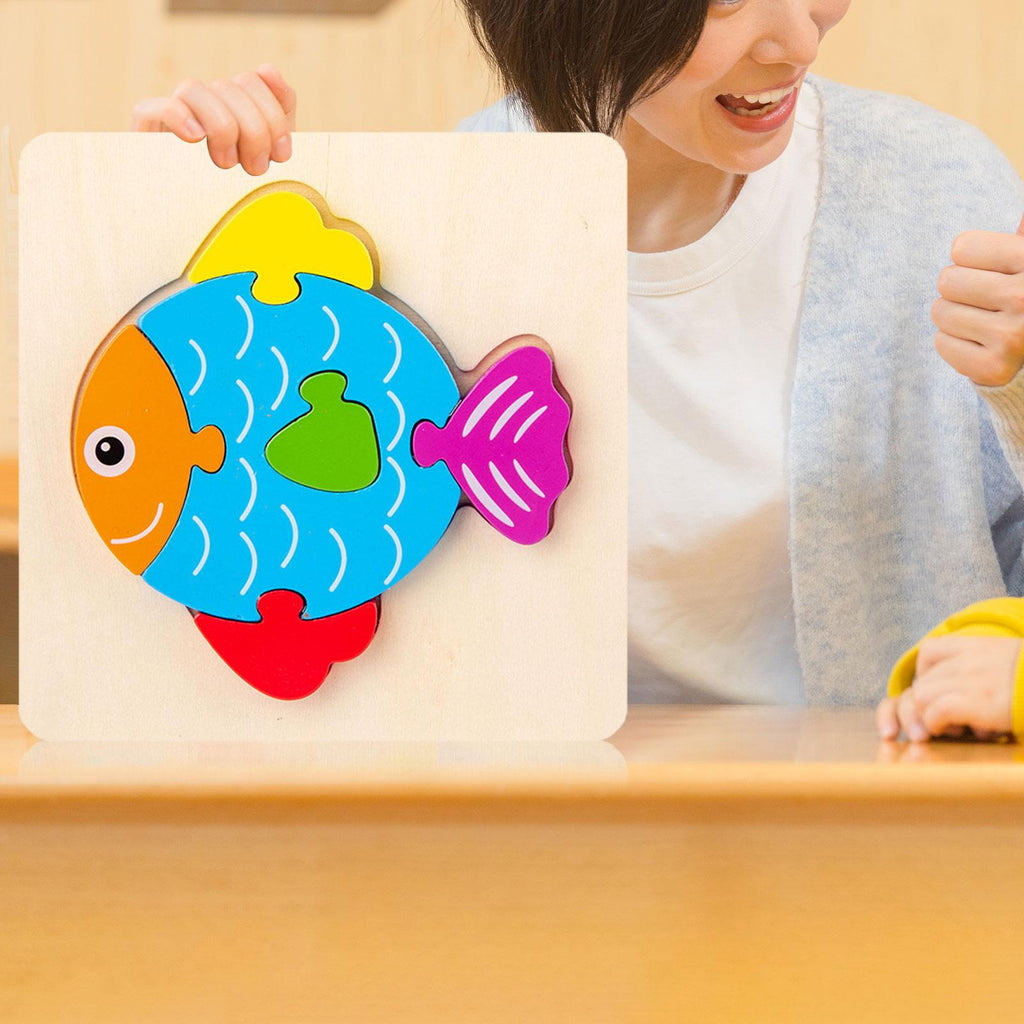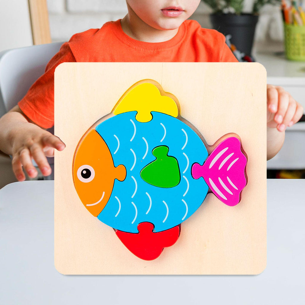 Maxbell Wooden Jigsaw Puzzle Stem Brain Teasers Puzzle Kindergarten Color Perception fish