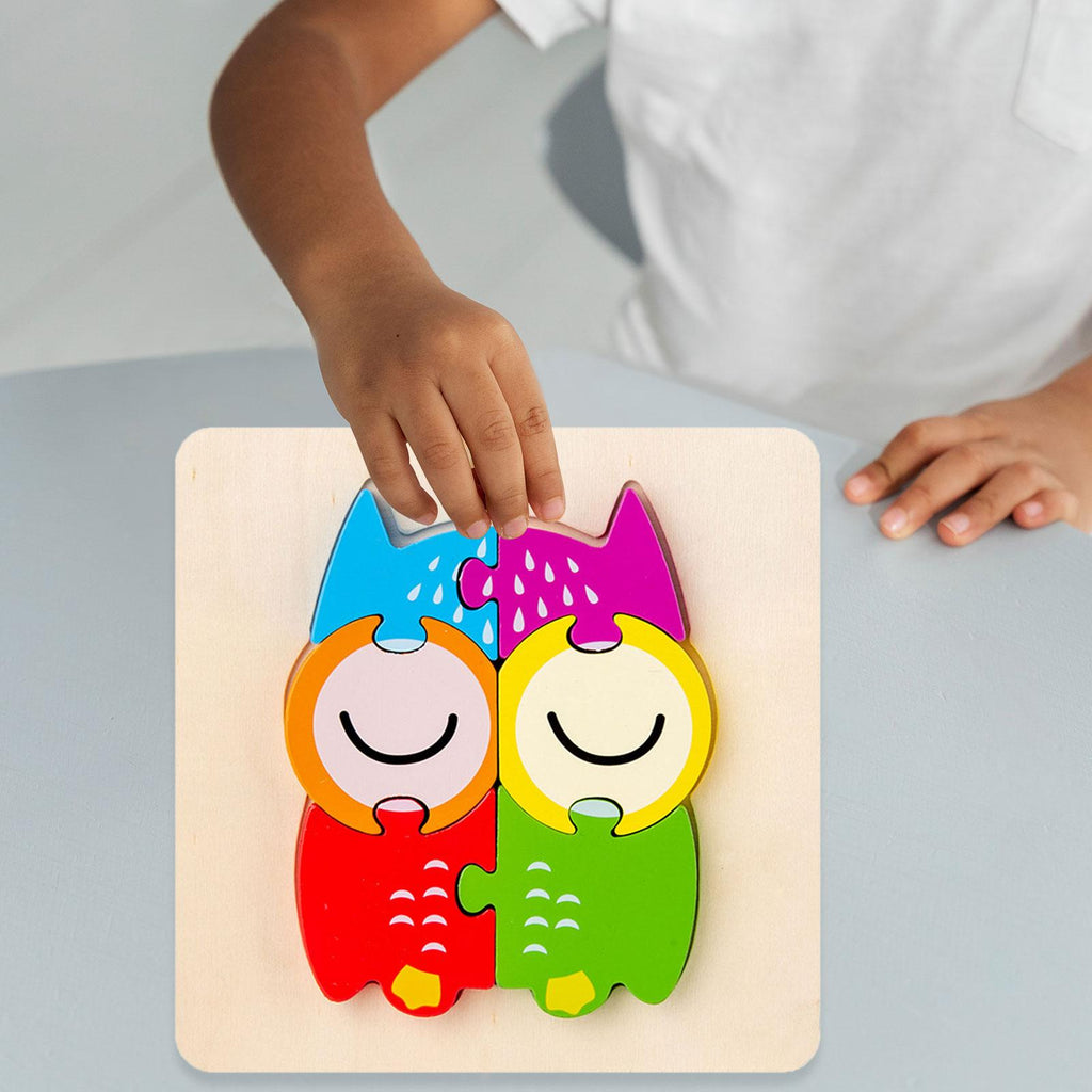 Maxbell Wooden Jigsaw Puzzle Stem Brain Teasers Puzzle Kindergarten Color Perception owl