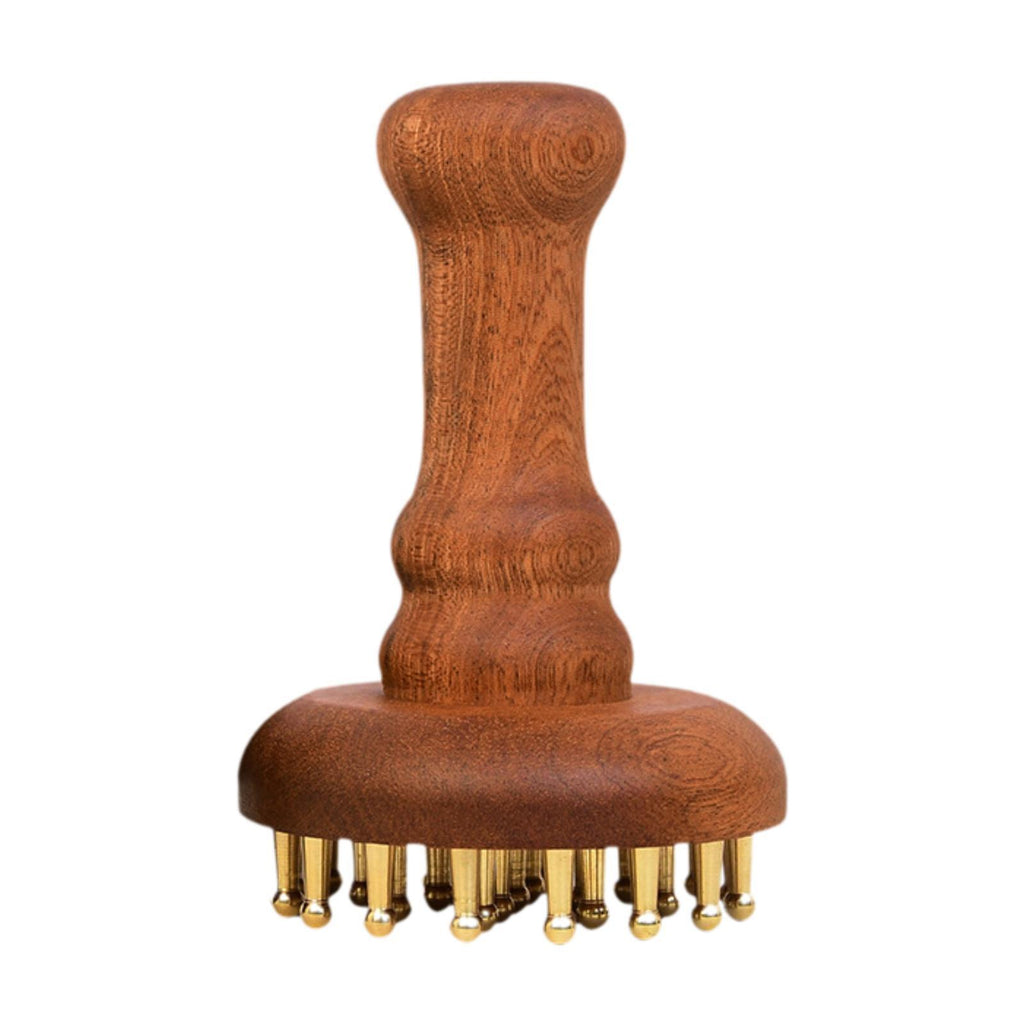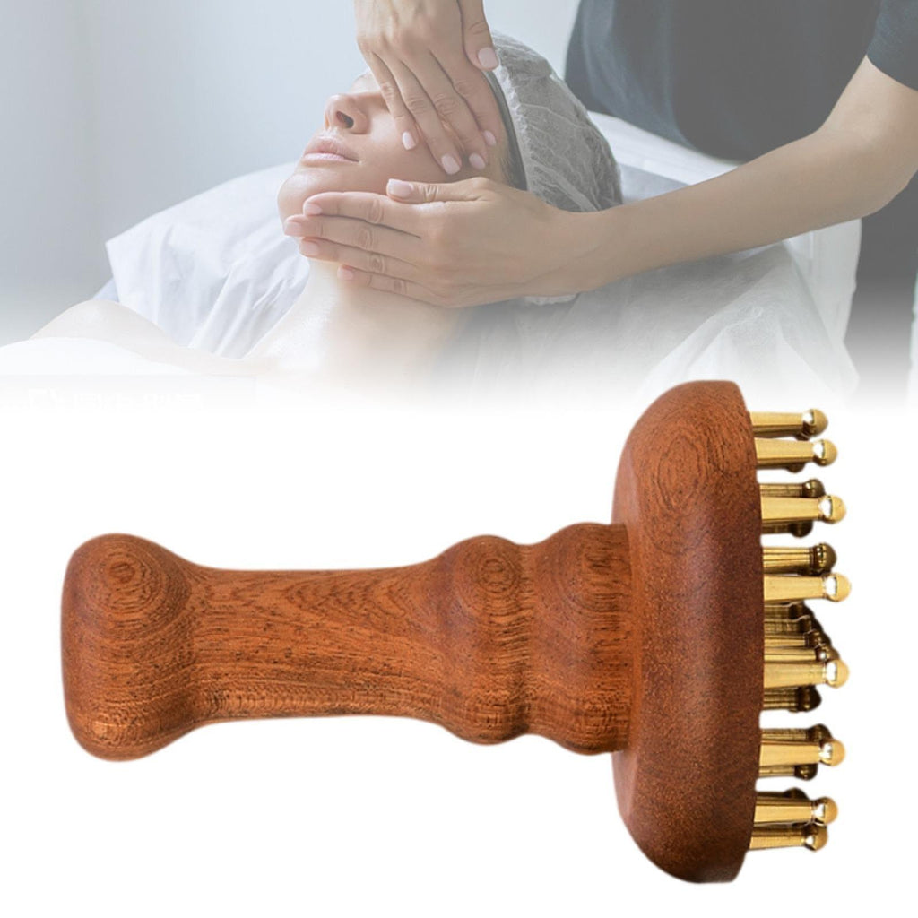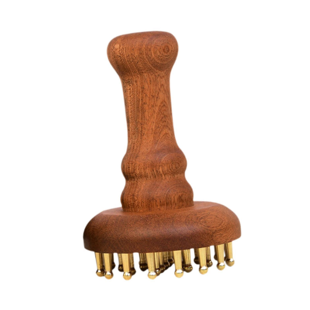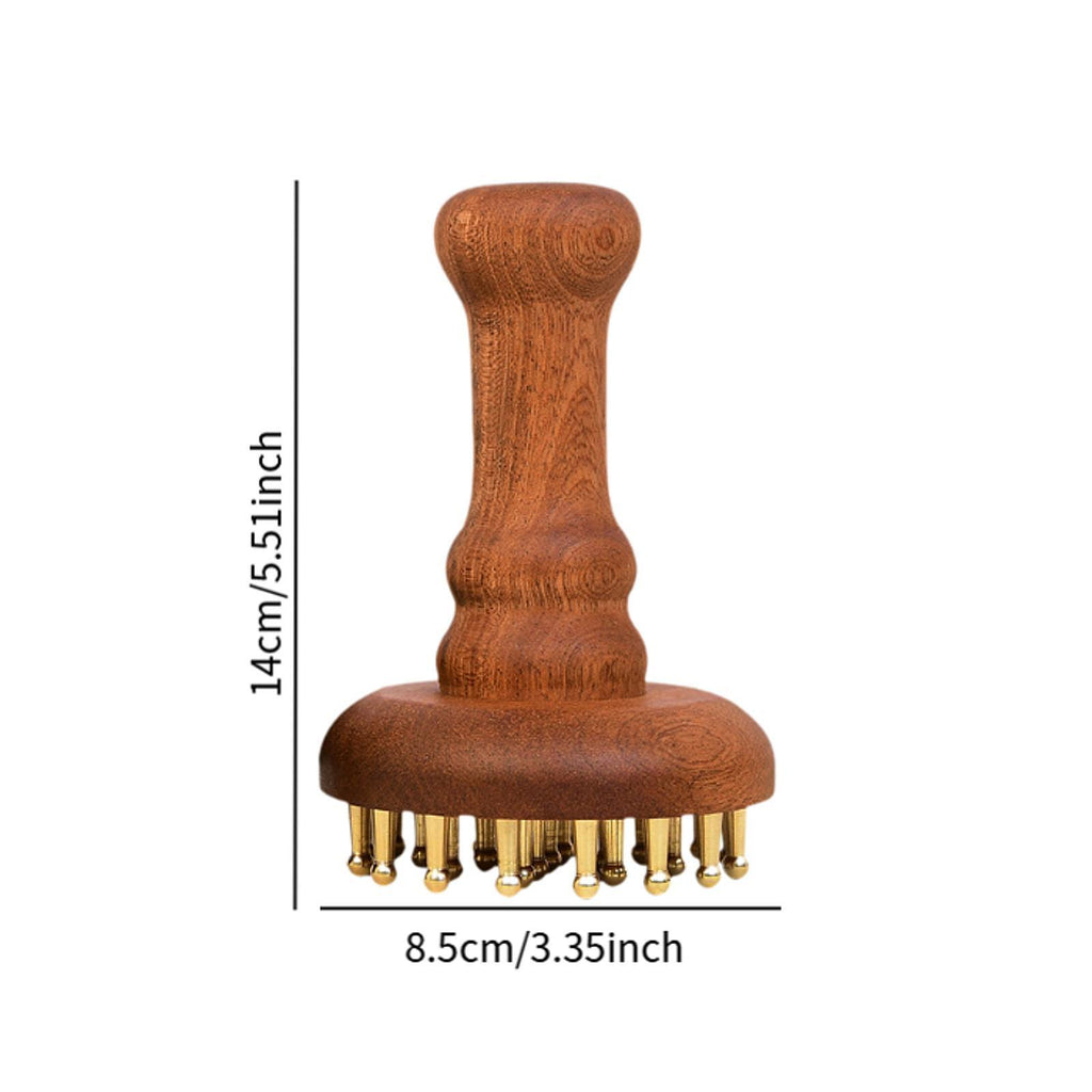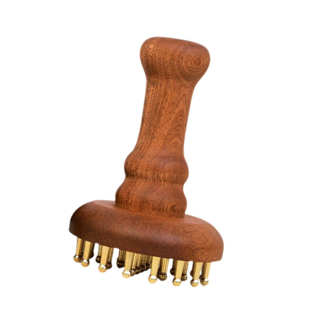 【Premium Quality Material】: Crafted from sturdy wooden and brass materials, this handheld massage comb boasts a smooth surface that ensures it won't scratch your skin during use