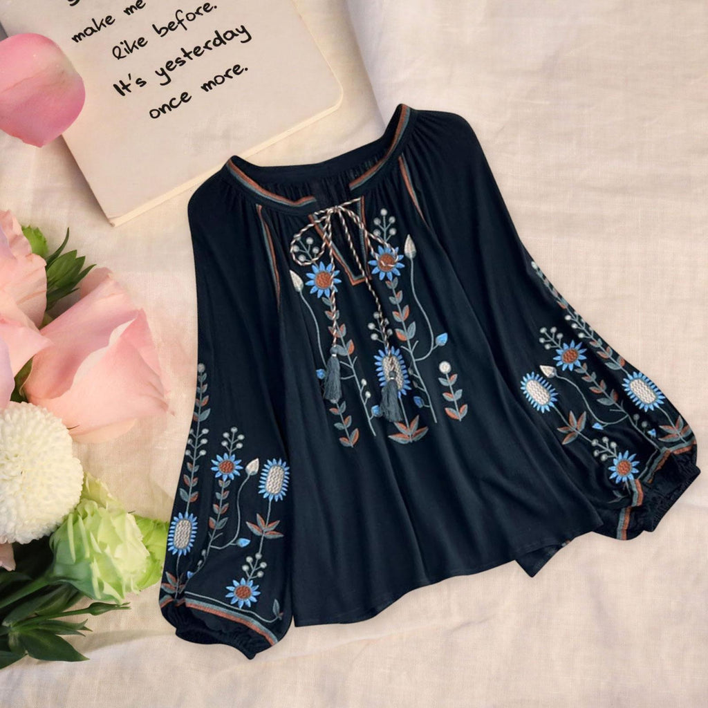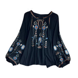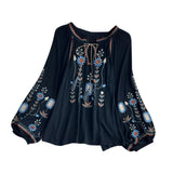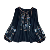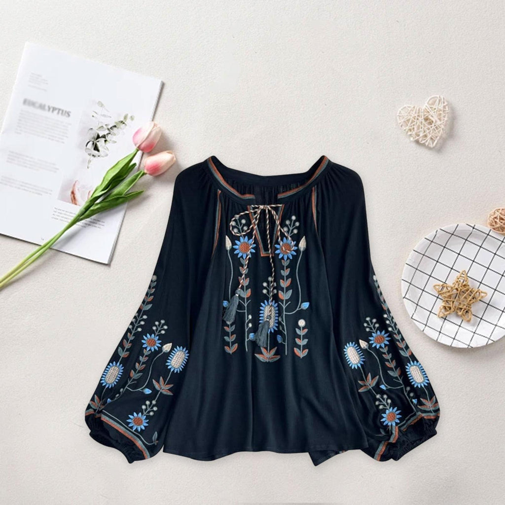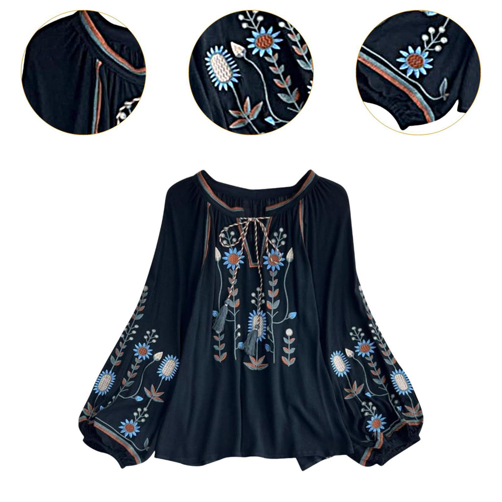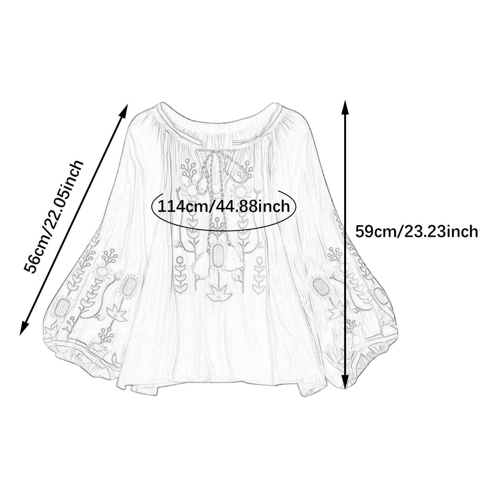 【Dimensions】: Length 59cm/23.23inch, Bust 114cm/44.88inch, Sleeve length 56cm/22.05inch. Enhance your wardrobe with this versatile embroidered bohemian blouse
