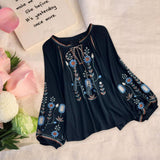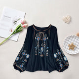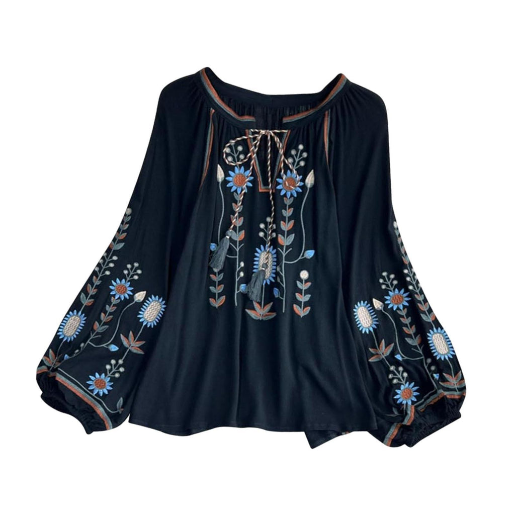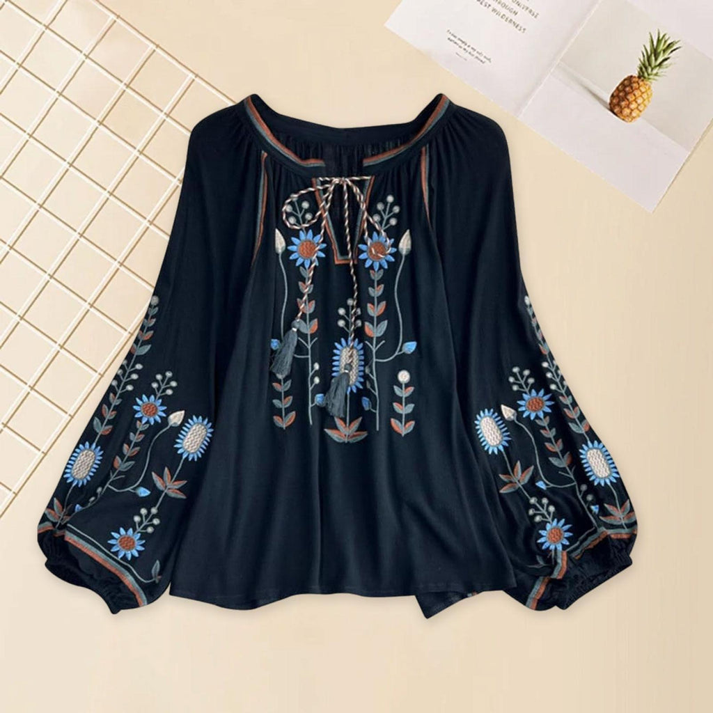 Maxbell Embroidery Blouse for Women Pullover Casual Women's Mexican Embroidered Tops Black