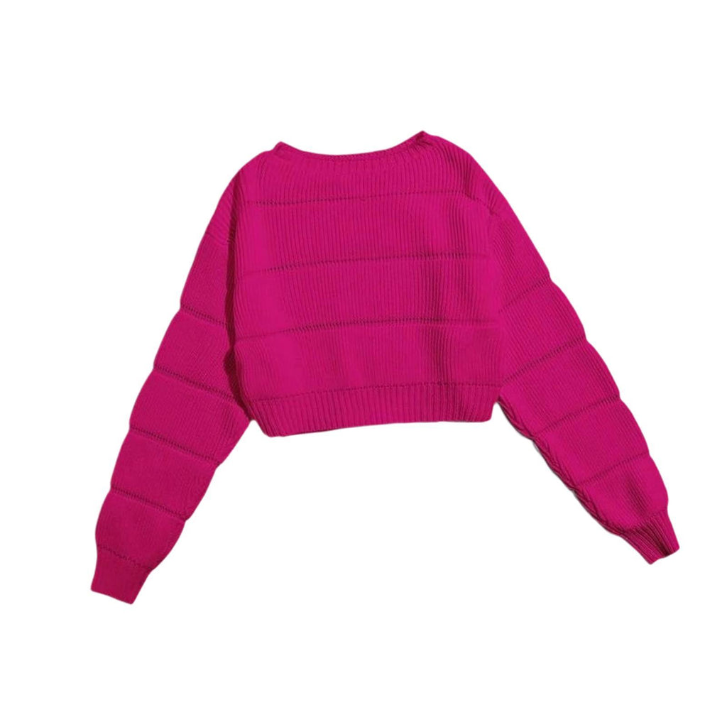 - 【Features】: Crewneck, drop shoulder, long sleeves, vertical grain cuffs, solid color, crop top sweater