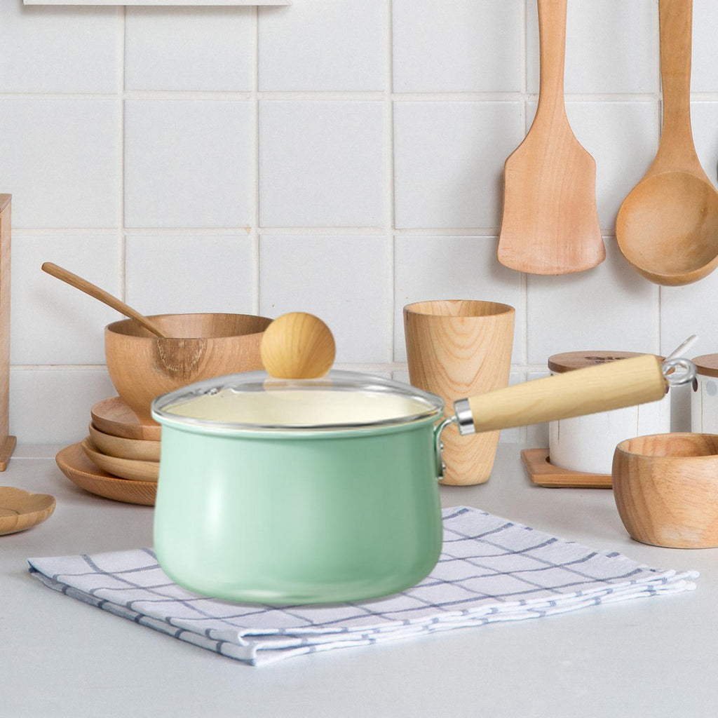 【Material】: Enamel Milk Pan is made of Ceramic Coated and Iron, smooth surface, non stick, easy to clean