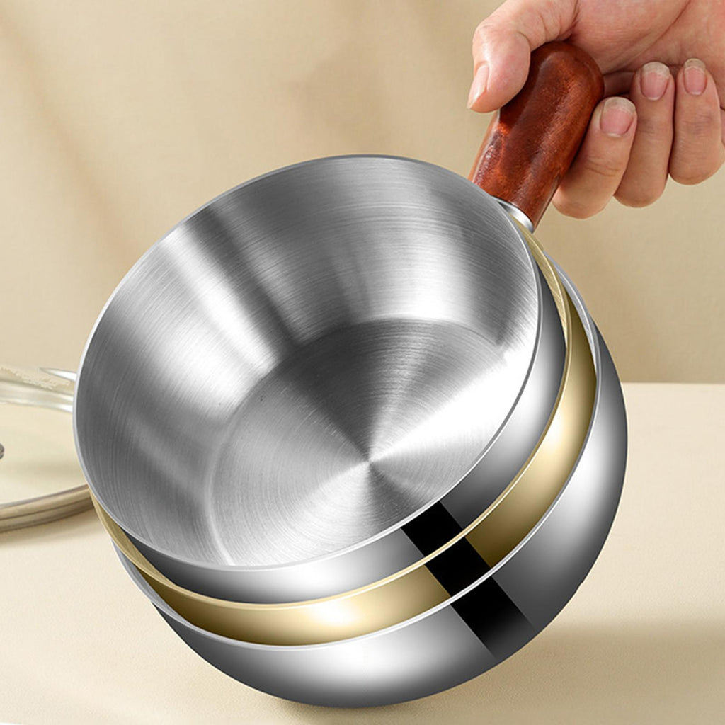 - 【with Handle】Sauce Pan features a comfortable and sturdy wood handle designed ergonomically for a secure grip and easy maneuvering while cooking