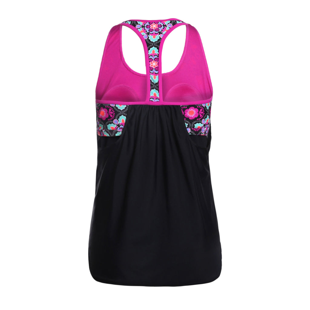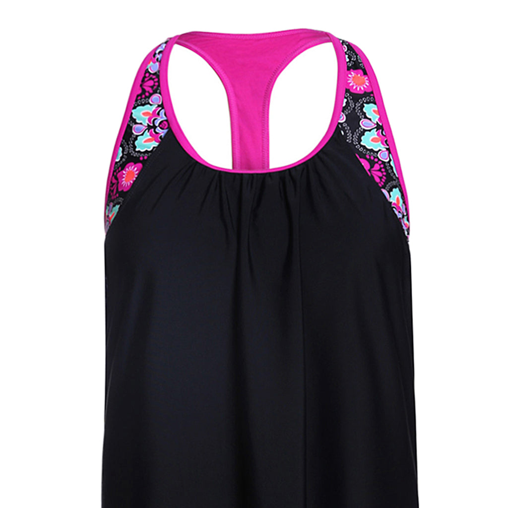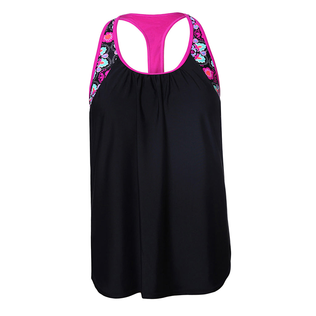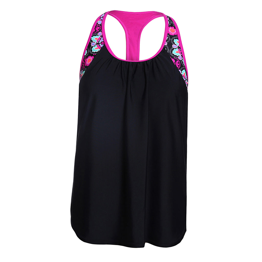 Maxbell Women Modest Tank Top Swimwear Floral T Back Vest Tankini Tops 3XL Black
