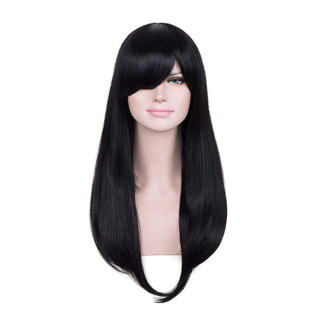 23'' Natural Silky Real Human Hair Black Long Straight Wigs Full Hairpieces