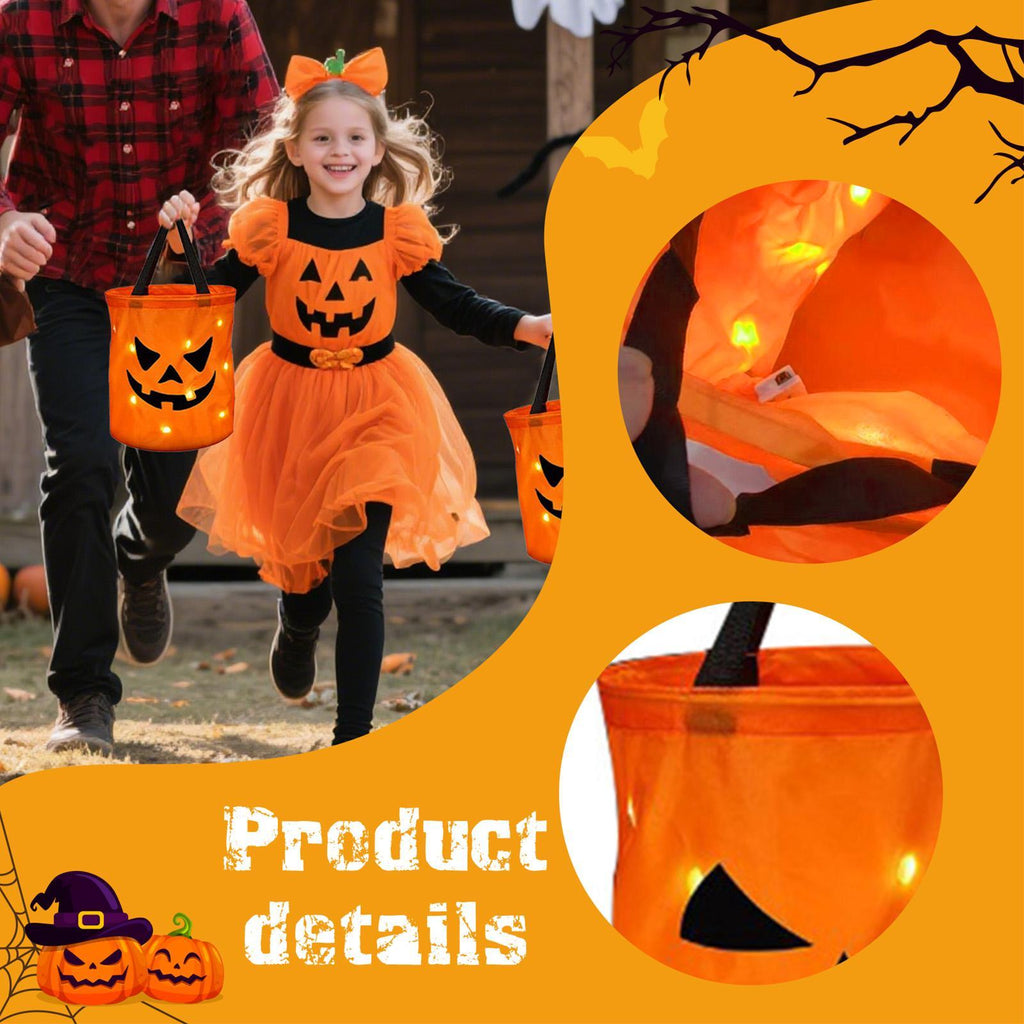 - 【Enchanting Light Up Design】: Illuminate the Halloween night with a captivating glow! Each treat bag features a classic pumpkin design with built in LED lights, creating a fun atmosphere that will delight children and make them stand out while trick or treating