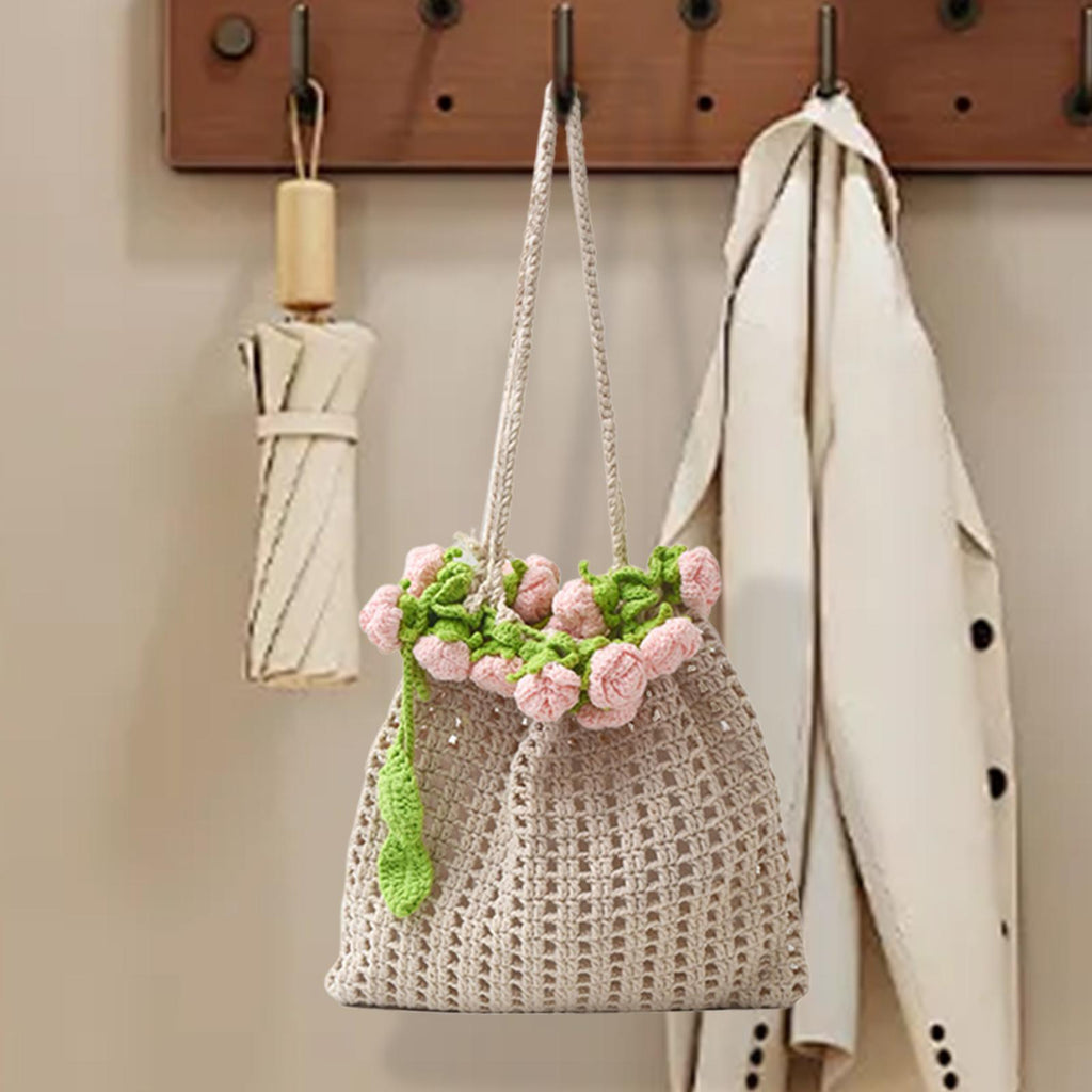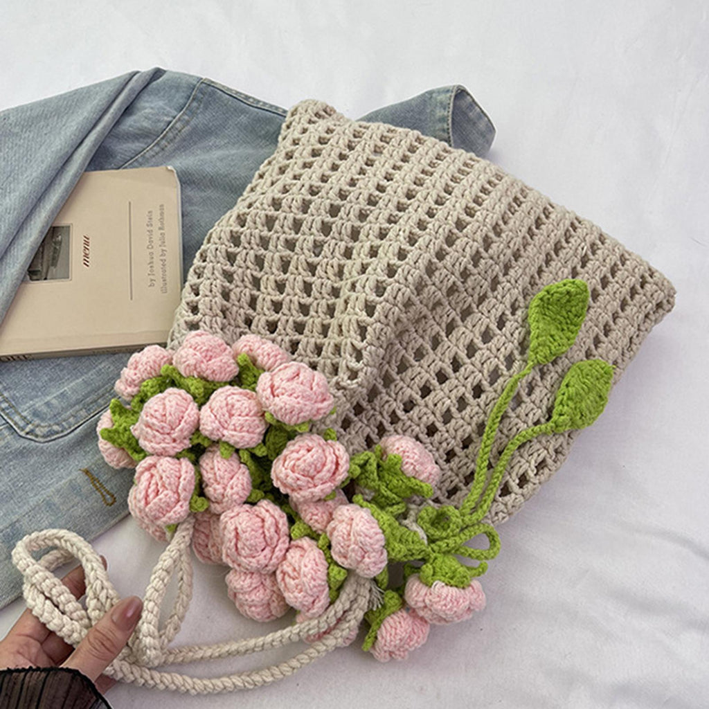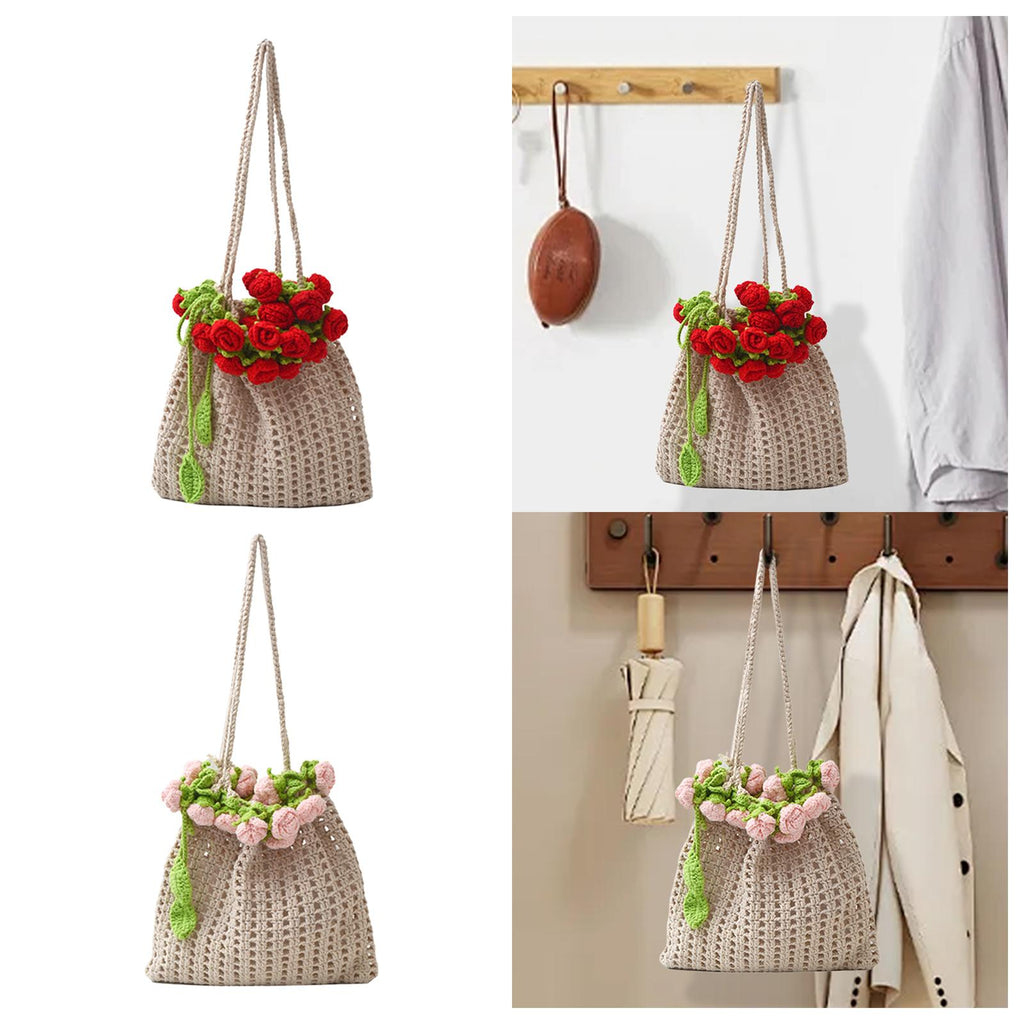 【Unique and Classic Design】: This summer rose bouquet woven bag features a stylish and casual look, great as a handbag or shoulder bag. Its lightweight design makes it ideal for everyday use
