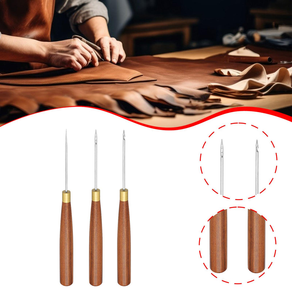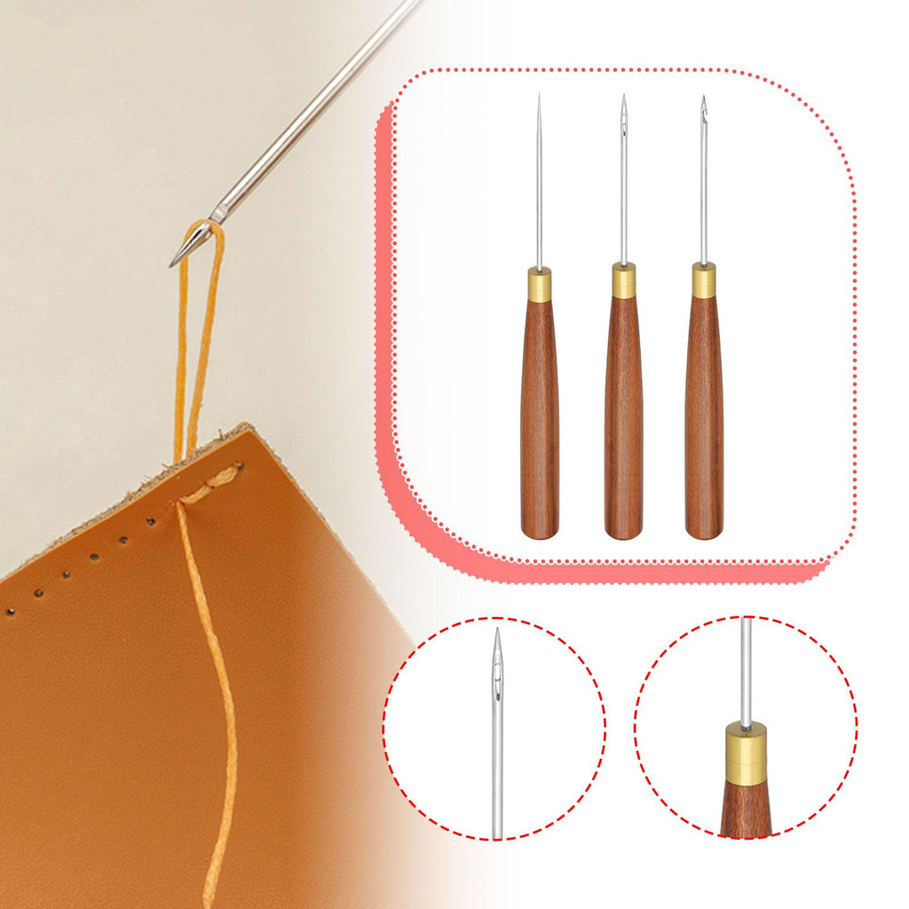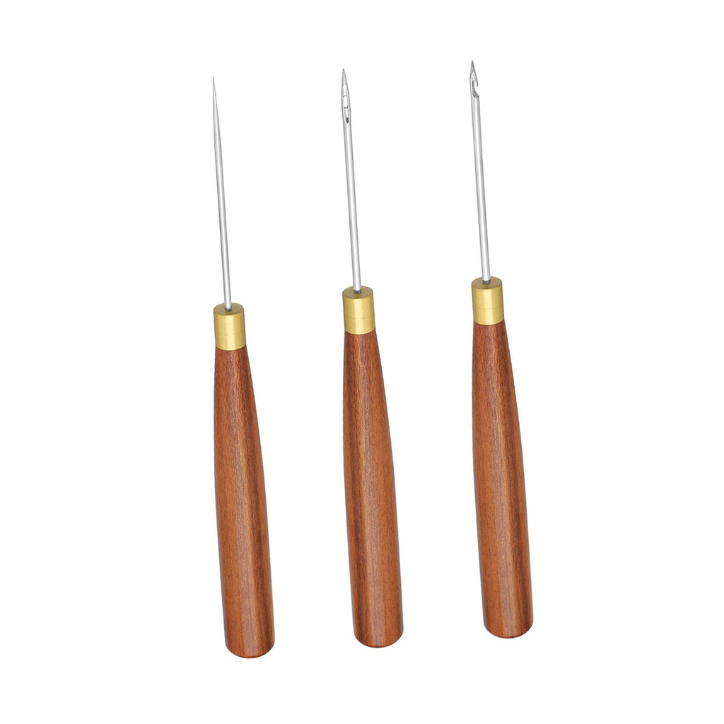 - 【Crafting Set】: Awl Tool includes three essential awls to tackle any project. It includes a straight awl for precise piercing and marking, a hook awl for thread pulling and untying knots, and a hole (sewing) awl for sewing heavy materials like leather and canvas