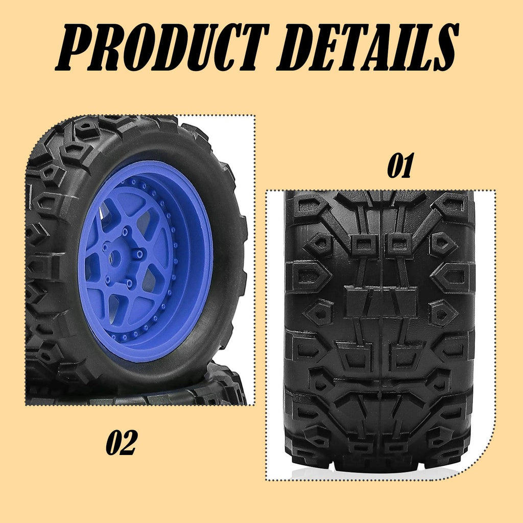 - 【Enhanced Performance】: Featuring 50 degree hardness rubber these 1/18 RC tires deliver great wear resistance while maintaining good traction on various surfaces