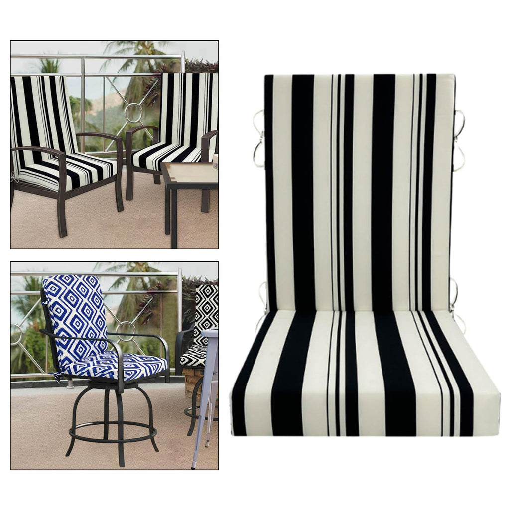 Maxbell Outdoor High Back Patio Chair Cushion Soft Chair Pad for Office Chair Garden Black White stripe