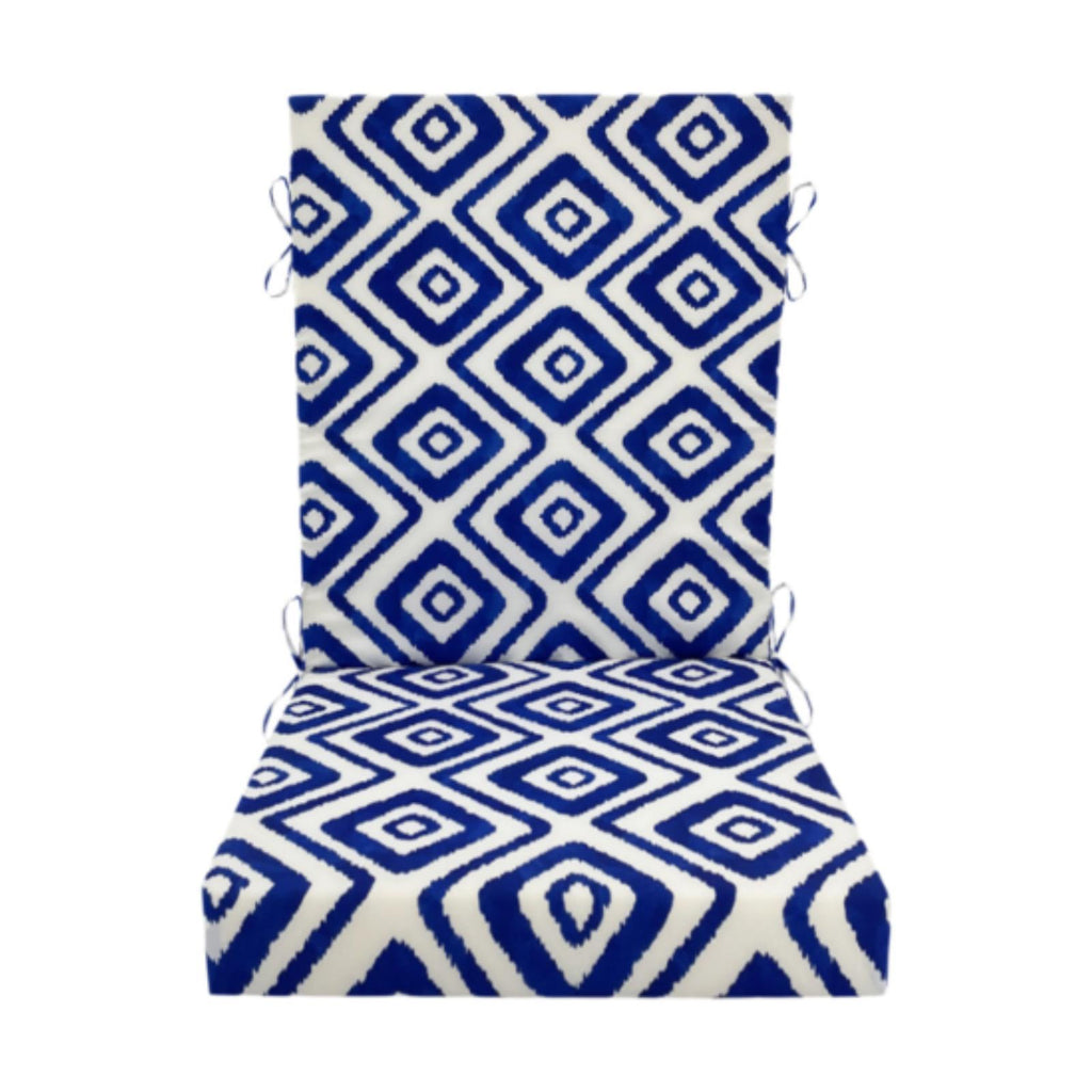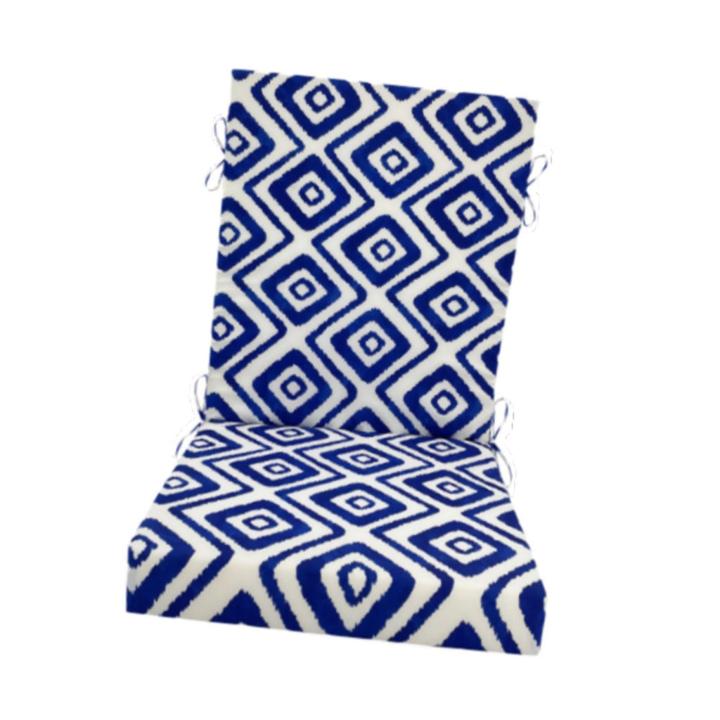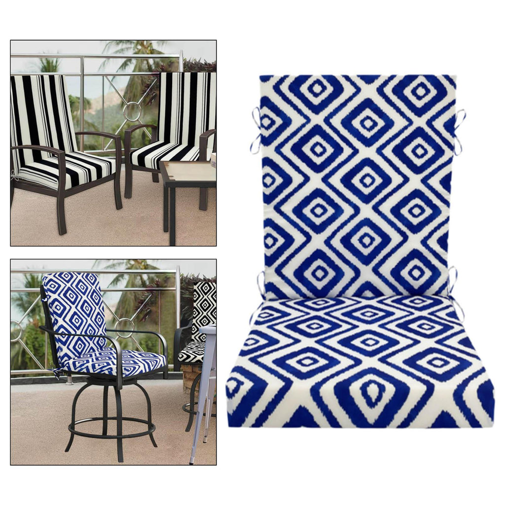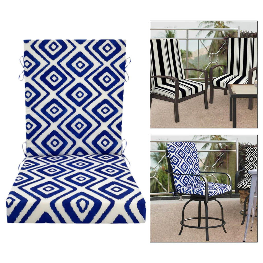 Maxbell Outdoor High Back Patio Chair Cushion Soft Chair Pad for Office Chair Garden Blue White geometry