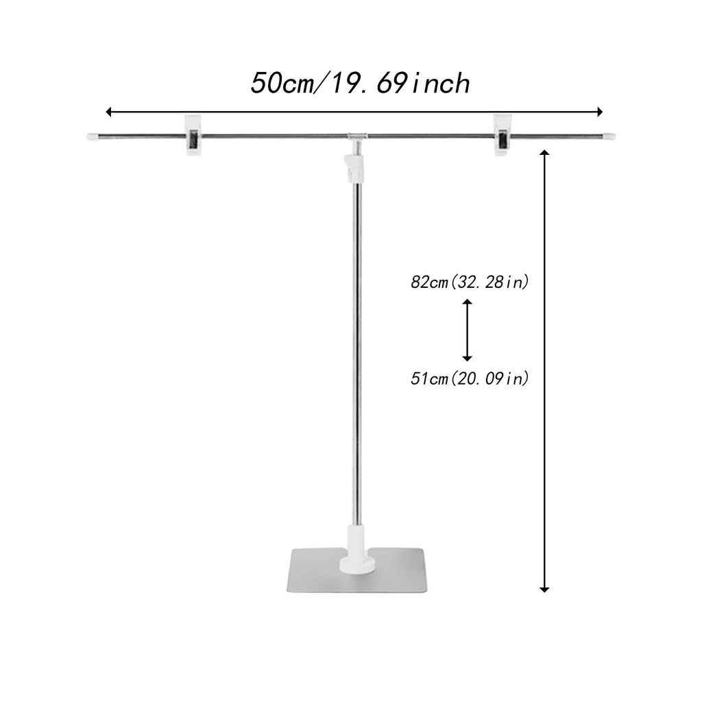- 【Adjustable Height for Versatility】: Easily adapt to your subject matter. The stand's height can be smoothly adjusted from 51cm to 82cm (approx. 20" to 32.3"), while the crossbar maintains a 50cm (approx. 19.7") width. This flexibility makes it ideal for tabletop product photography, food takes, and video calls