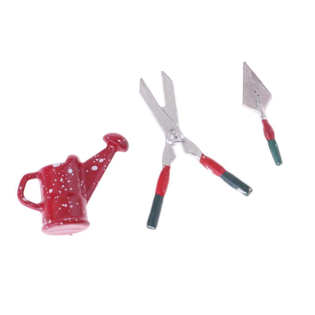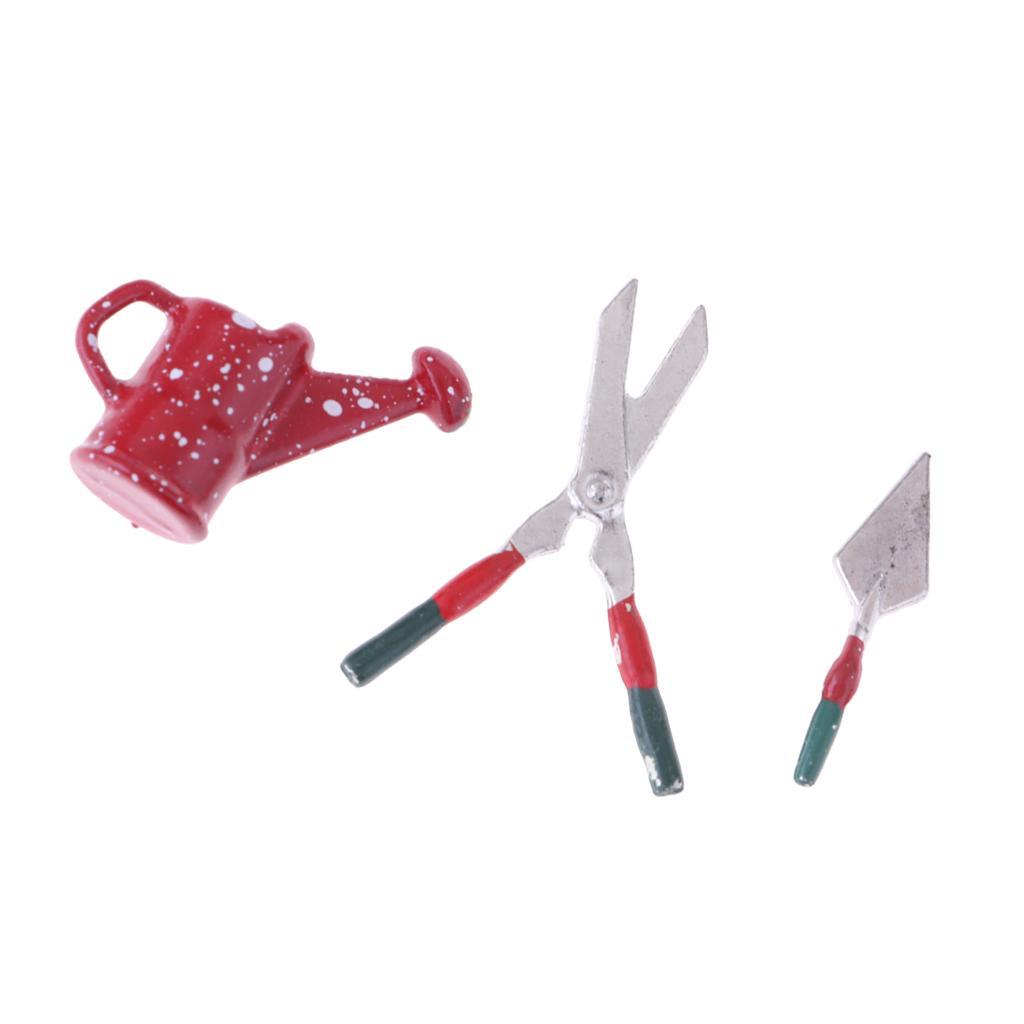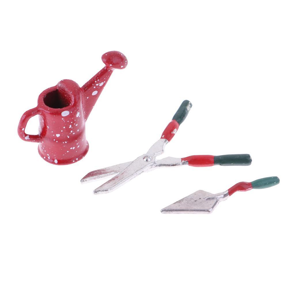 Maxbell 1:12 Dollhouse Miniature Accessories Gardening Tools Kit Red