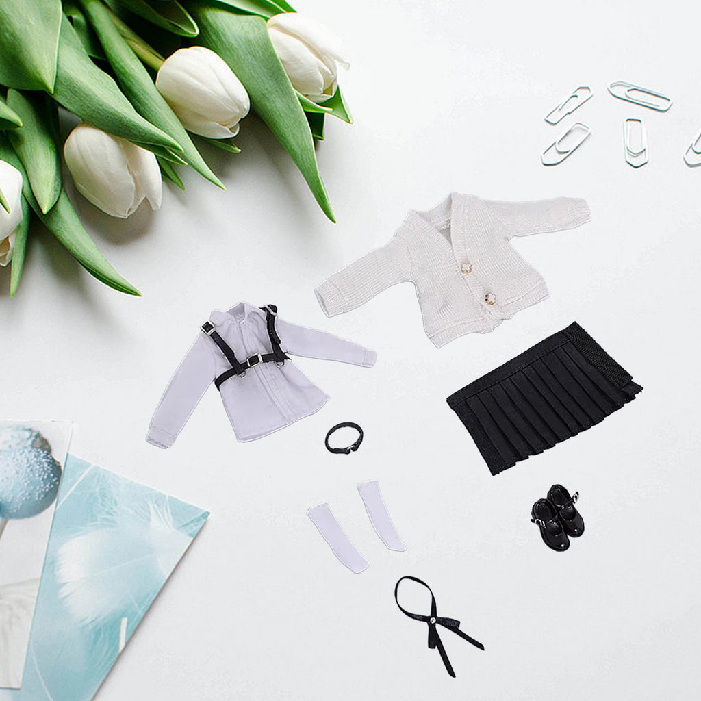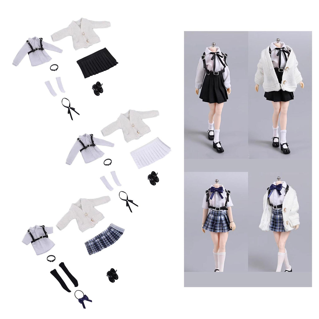 Maxbell 1:12 Scale Schoolgirl Uniform Suit for 1/12 Action Figures BJD Doll Dress up Black