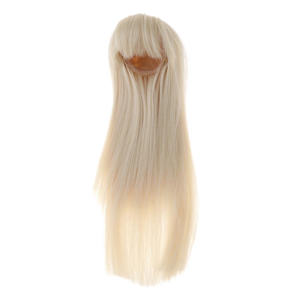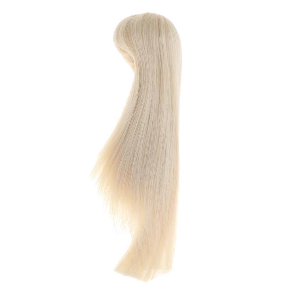 Maxbell 1/4 BJD Full Wigs Long Straight Synthetic Hair for Dollfie DIY Custom Golden