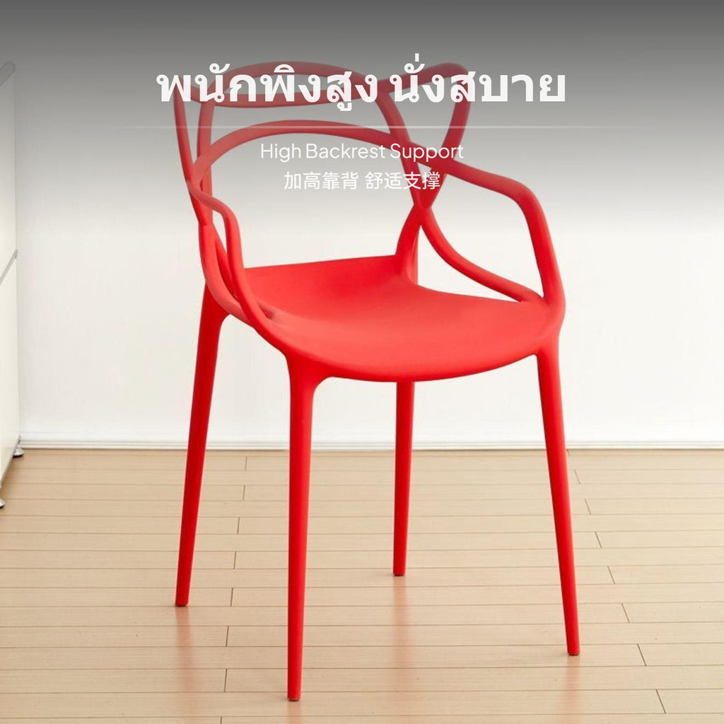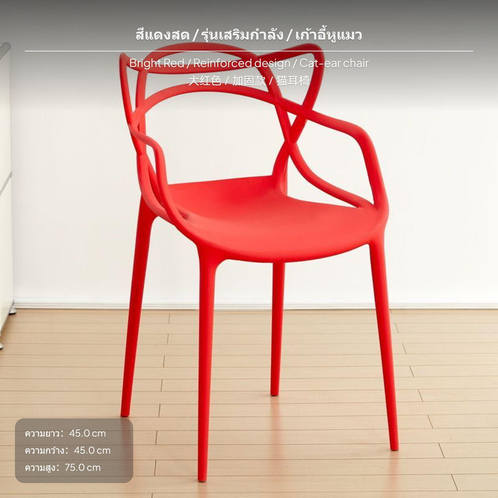 1-Pack Nordic Stackable Plastic Dining Chair, Armrest Backrest Modern Minimalist, Cat Ear branch-inspired design for Restaurant, Café, Office Bright Red