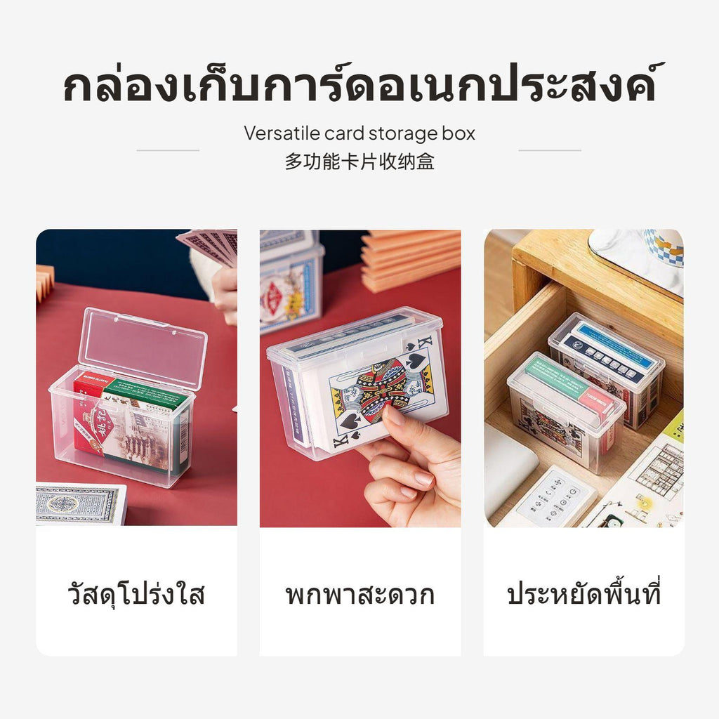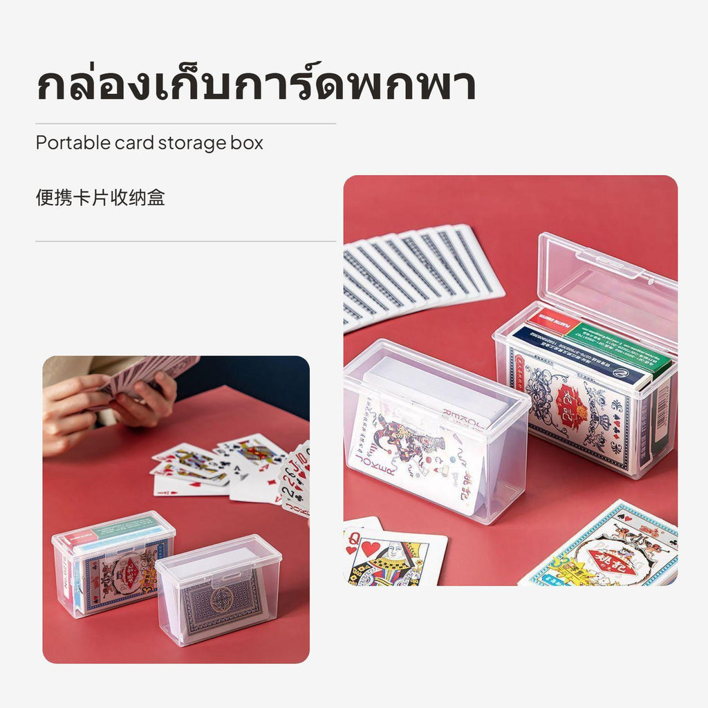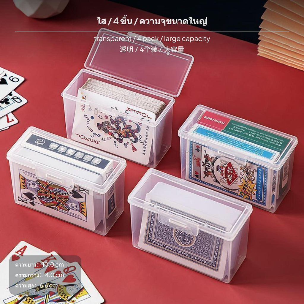 [Efficient Card Organization] Keep your poker, game cards, and name cards sorted and protected in this transparent card storage box, designed with a large capacity to easily hold various card kind.[Clear Visibility & Quick entry] The see-through transparent construction allows you to view contents at a glance, saving time and making it convenient to locate specific cards for home, office, or travel.[protected hinged lid with Snap Closure] Features a timeless rectangular shape and a hinged lid lid with a snug snap, offering effective particle and moisture protection for full card protection.[High-Quality PP Material] Crafted from sturdy polypropylene material, this box offers outstanding strength and resists deformation, guaranteeing dependable card storage and ease of maintenance.[Space-Saving adaptable] The minimalist design and space-efficient rectangular shape fit seamlessly in drawers, on desks, or within storage spaces, creating a tidy and organized environment.Specification: