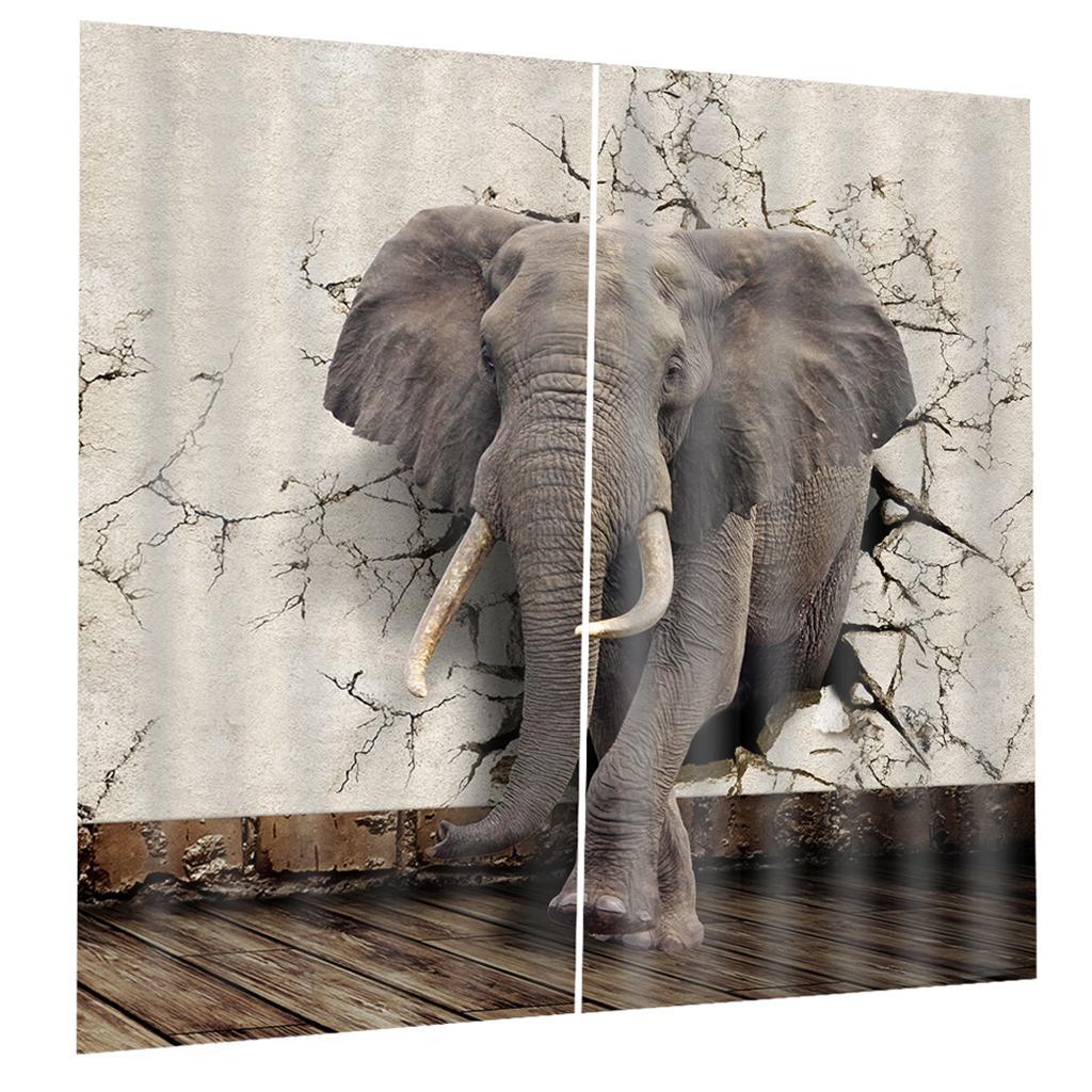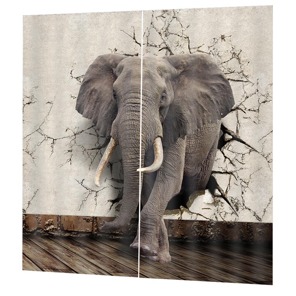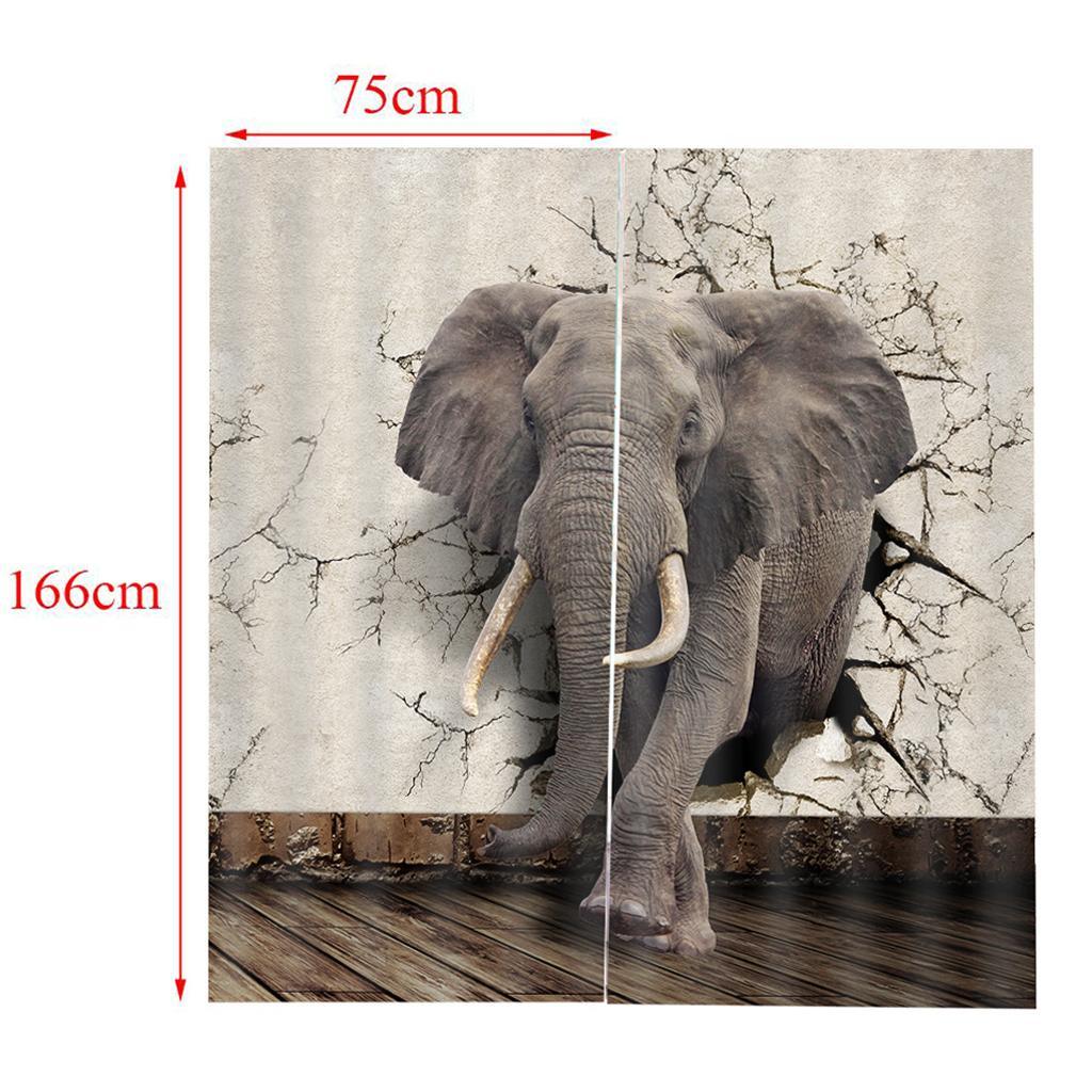 Maxbell Maxbell 1 Pair Thermal Insulated Shower Curtain Window Curtain Panel Elephant