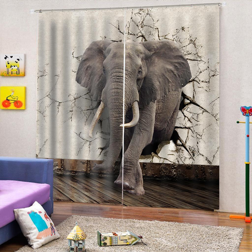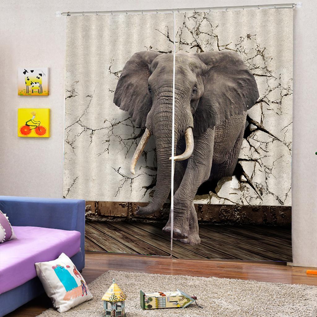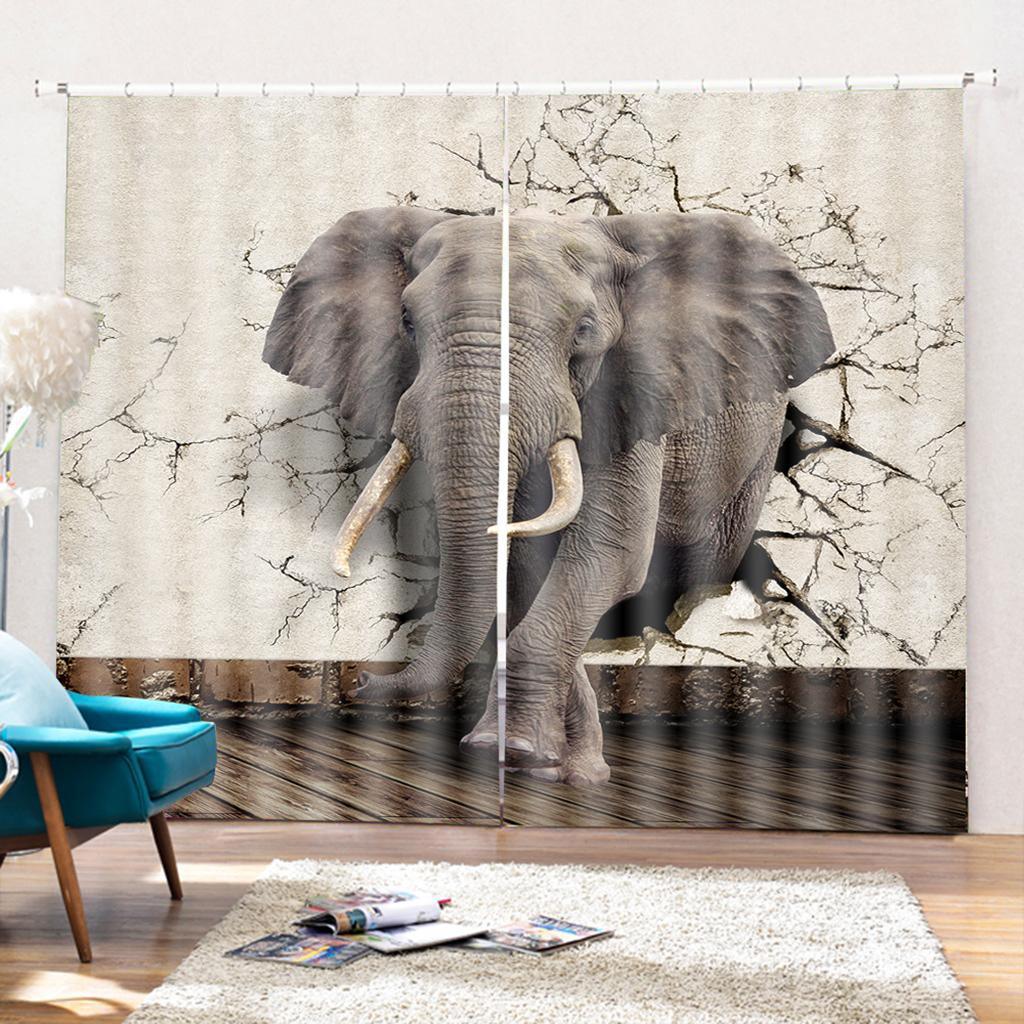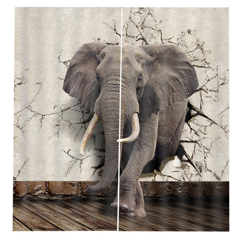 Maxbell Maxbell 1 Pair Thermal Insulated Shower Curtain Window Curtain Panel Elephant