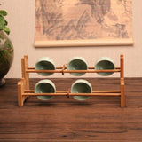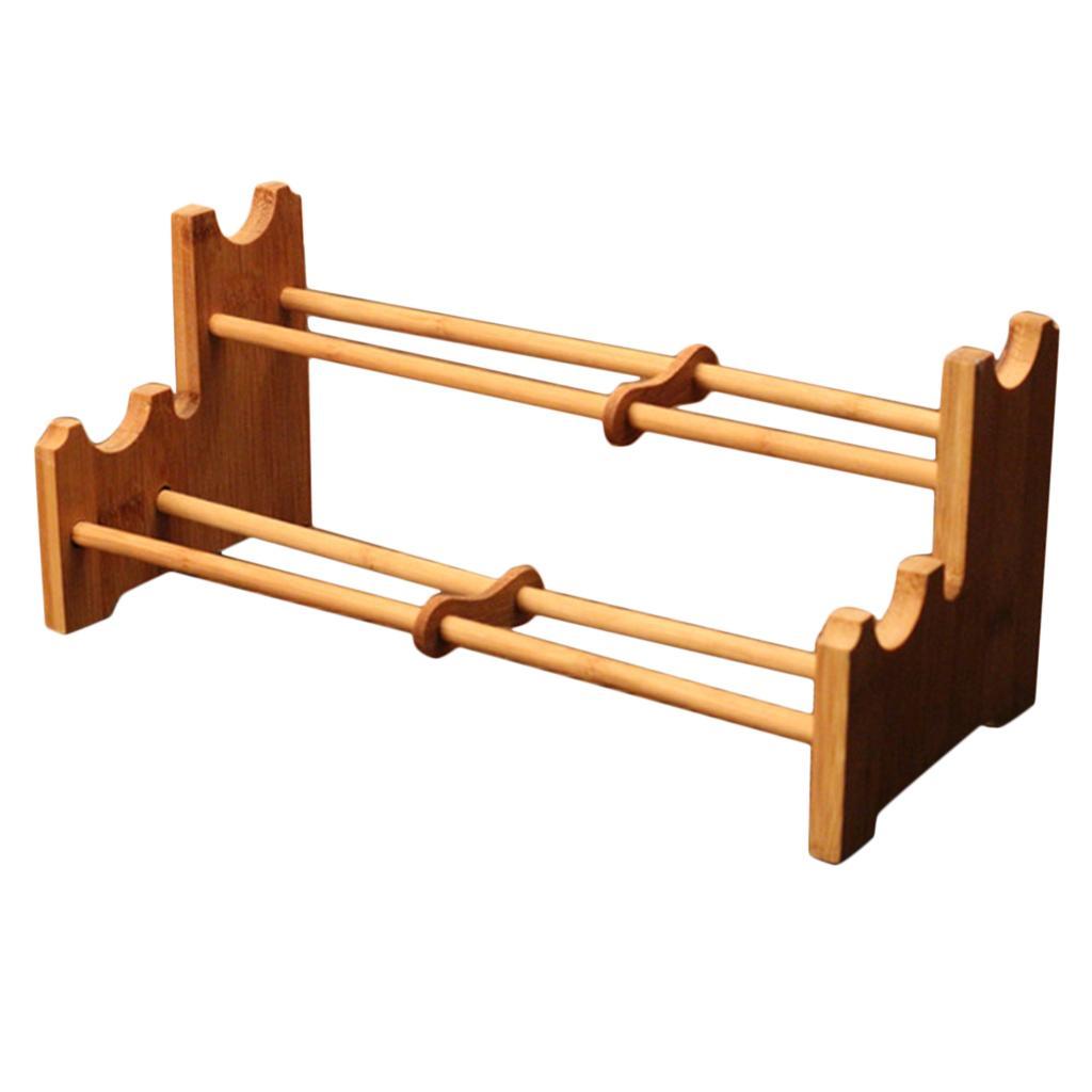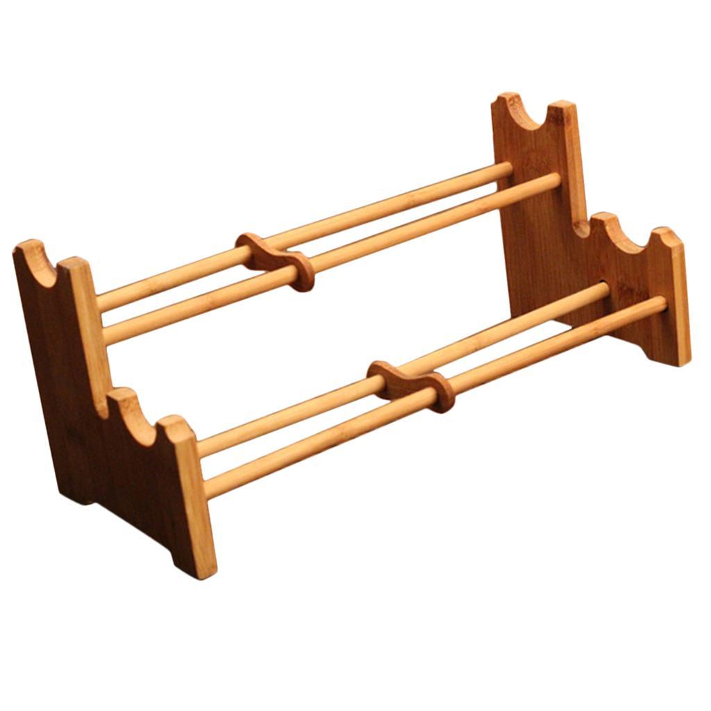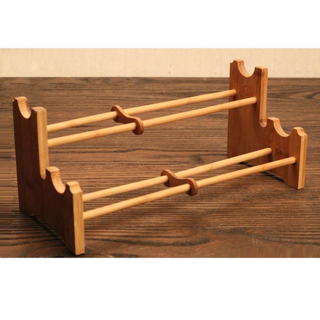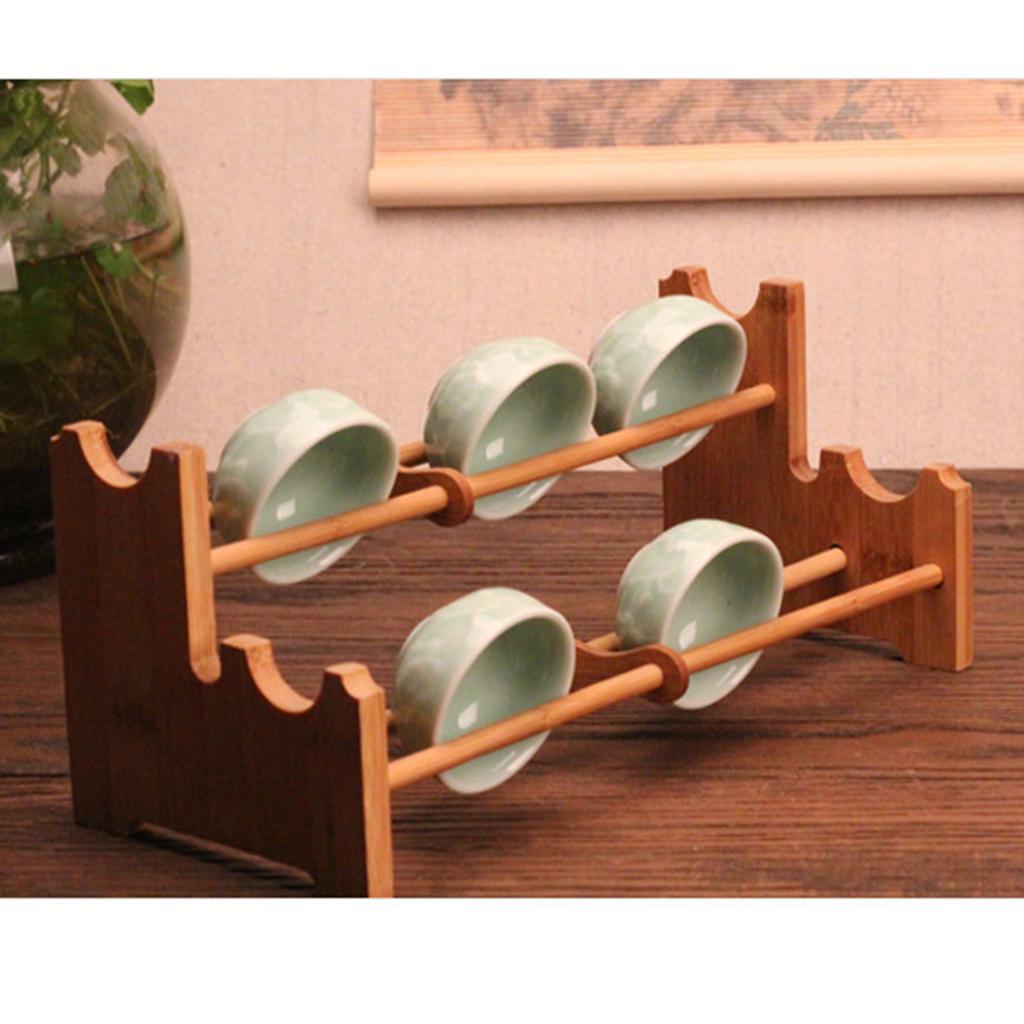 Maxbell 1 Piece Natural Bamboo Tea Cup Holder Drying Drainer Kitchen Display Double Layer