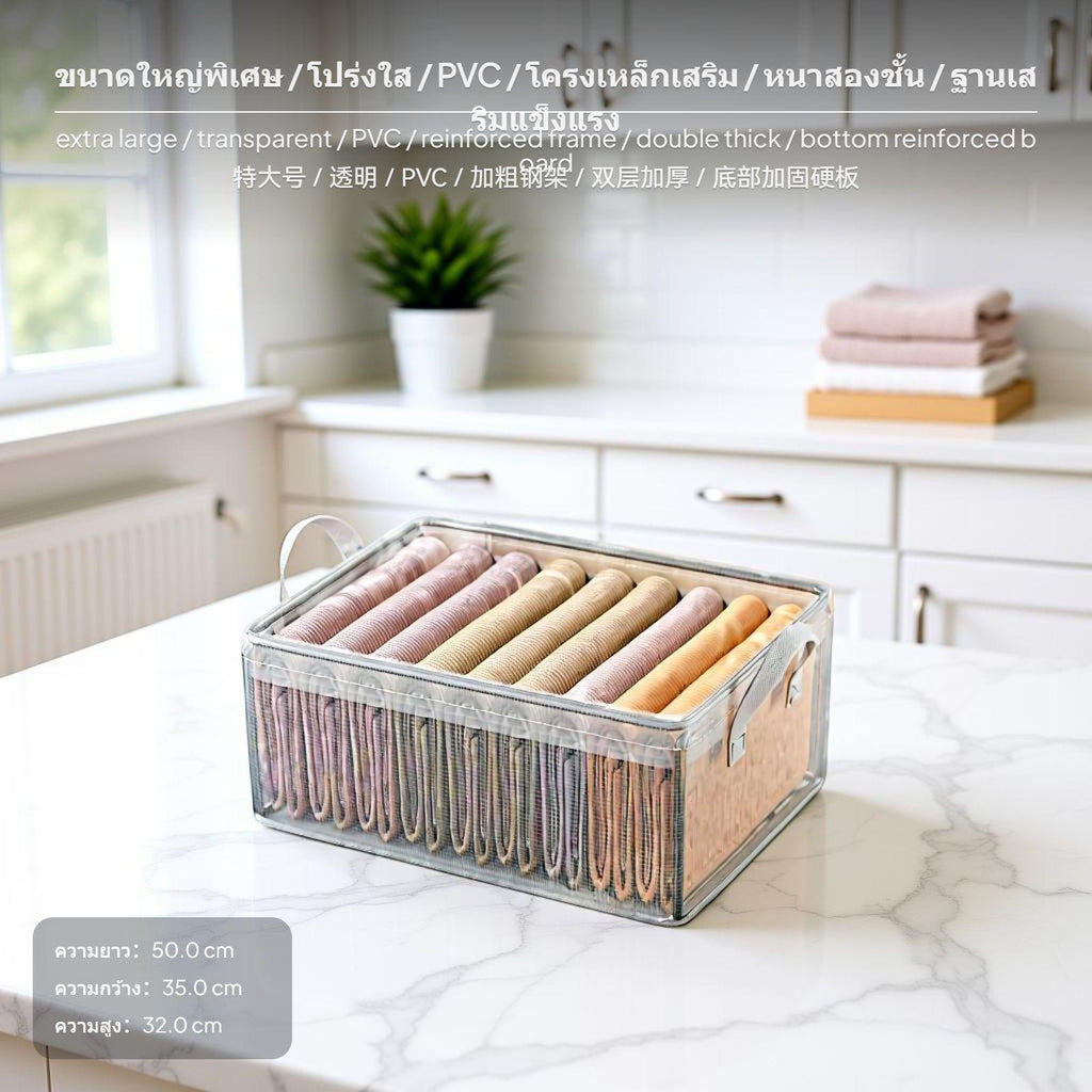 [Clear Visibility and Easy entry] This clothing storage box is designed with a transparent PVC material, allowing you to easily view and retrieve your items at a glance.[sturdy design with Reinforced Frame] Built with a sturdy steel frame and thickened base board, this organizer ensures stability and dependable support, even when stacked in layers.[Foldable and Space-Saving Design] Featuring a foldable construction, this storage box can be easily folded when not in use to save valuable space in your home.[Multi-Purpose Organization] Perfect for storing various items such as t-shirts, sweaters, pants, or assorted goods, making it a adaptable addition to your bedroom or any living space.[Convenient and Portable] Equipped with a practical top handle, this closet organizer organizer is easy to move, helping you efficiently maintain a tidy, organized home.Specification: