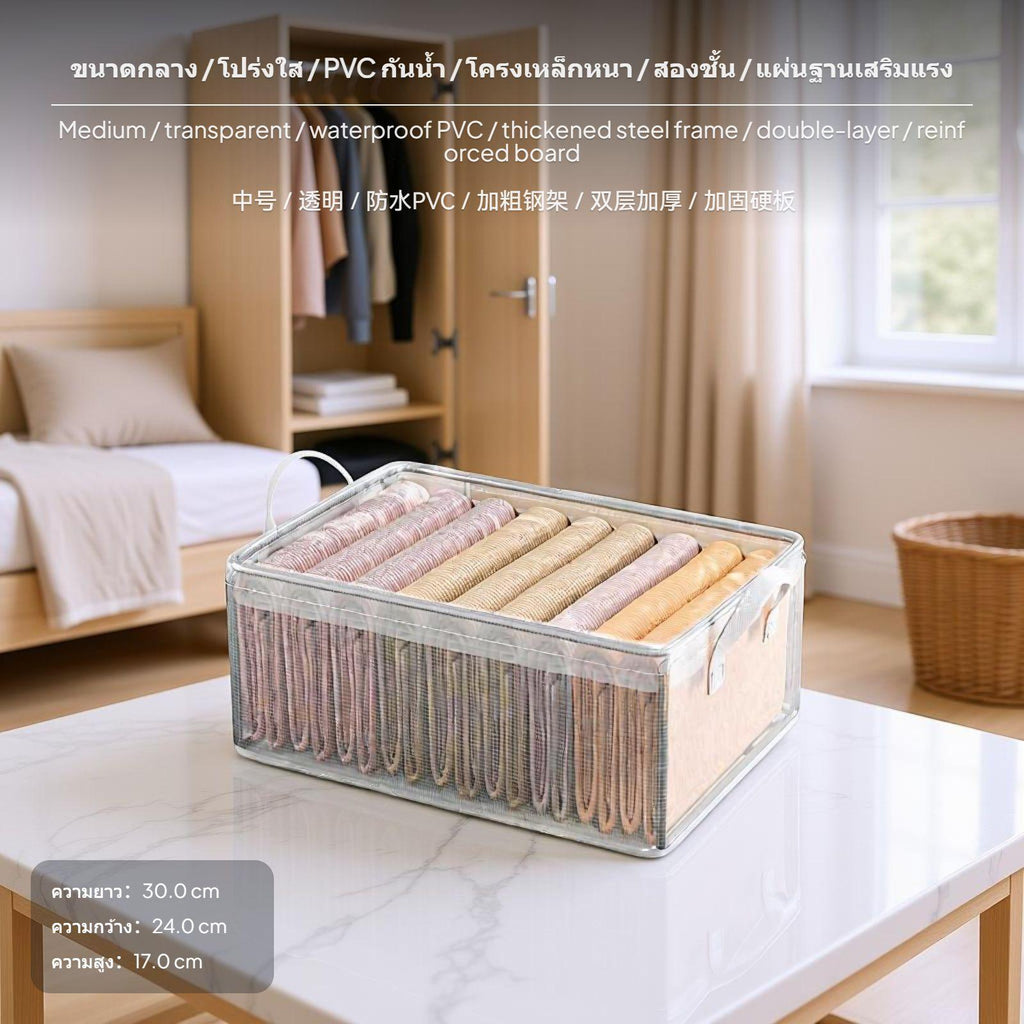 1-Piece Transparent Foldable Clothing Storage Box, Waterproof Organizer for closet organizer Medium Transparent