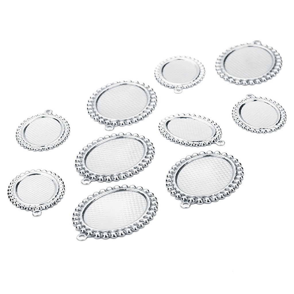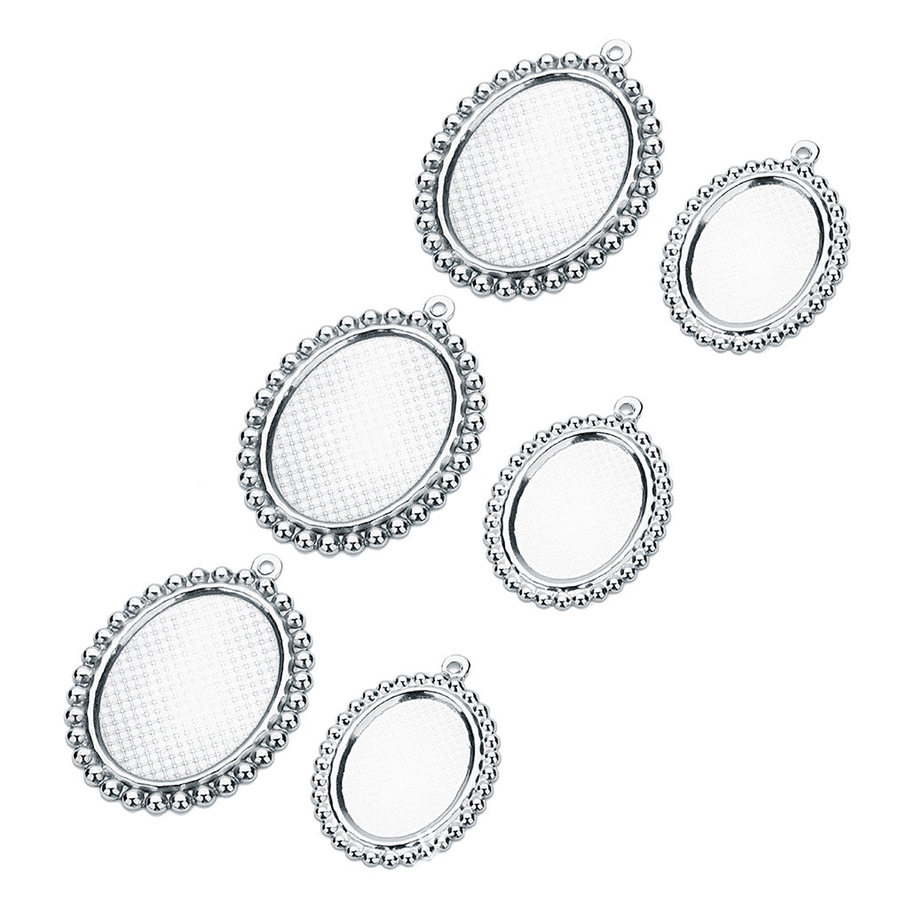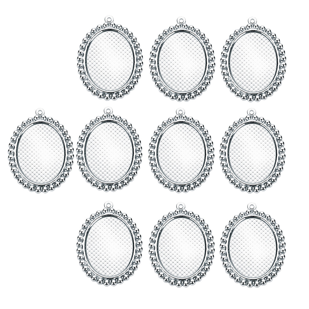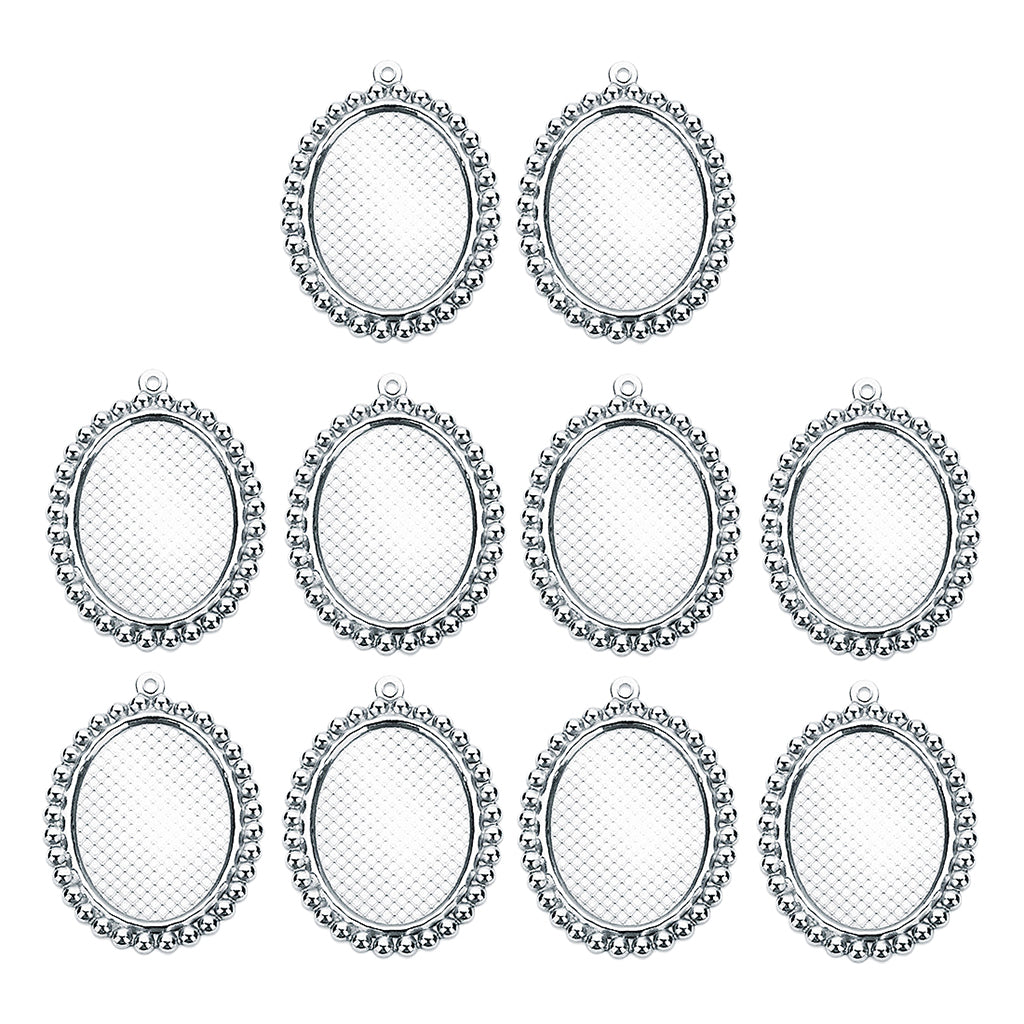 Maxbell 10 Pieces 13x18mm Vintage Oval Pendant Bezel Trays, Silver Tone, Blanks Cameo Bezel Cabochon Settings for Jewelry Making Charms
