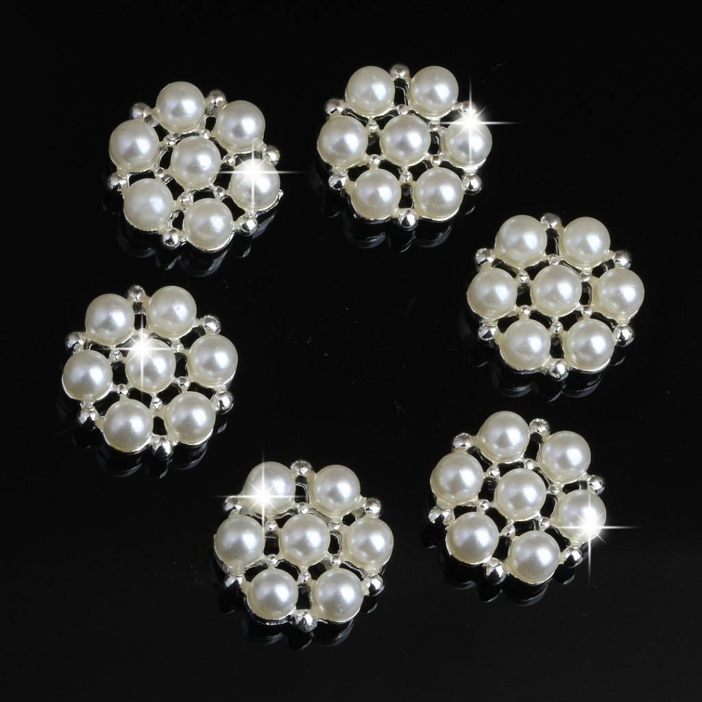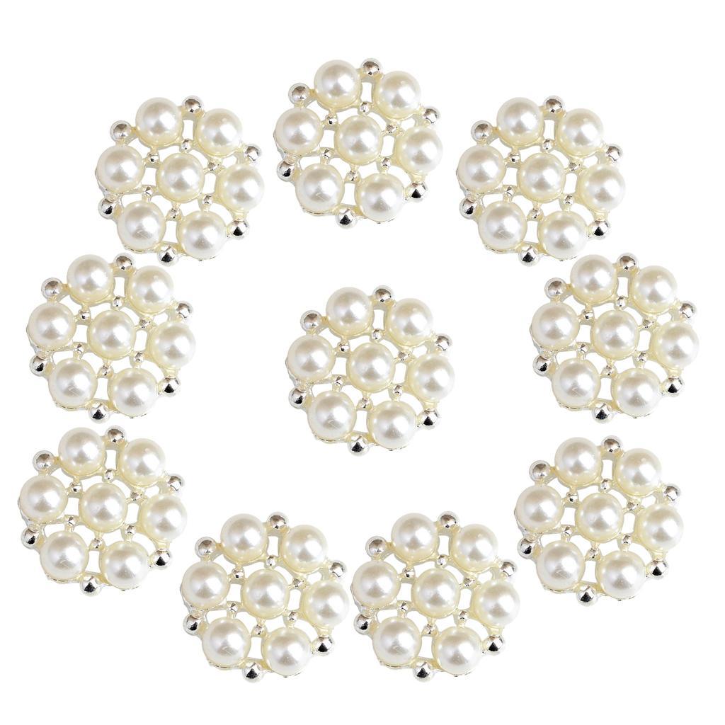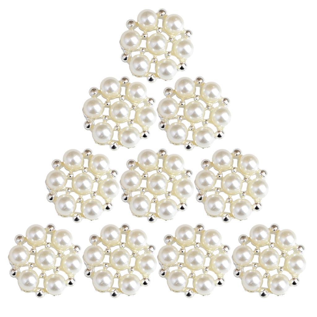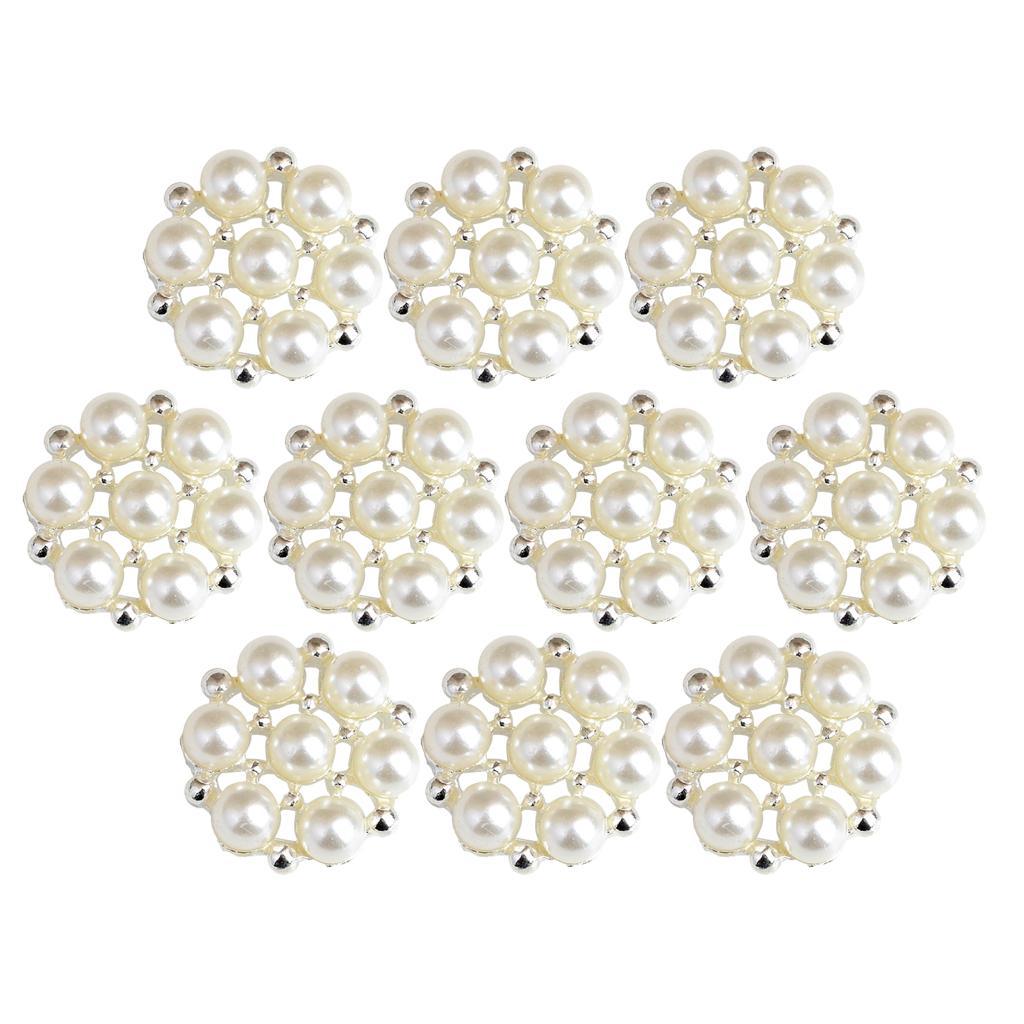Maxbell 10 Pieces Crystal Diamante Pearl Flower Flatback Buttons for DIY Bridal Ornaments