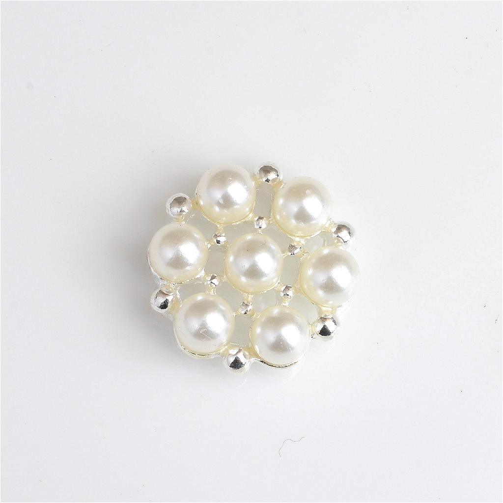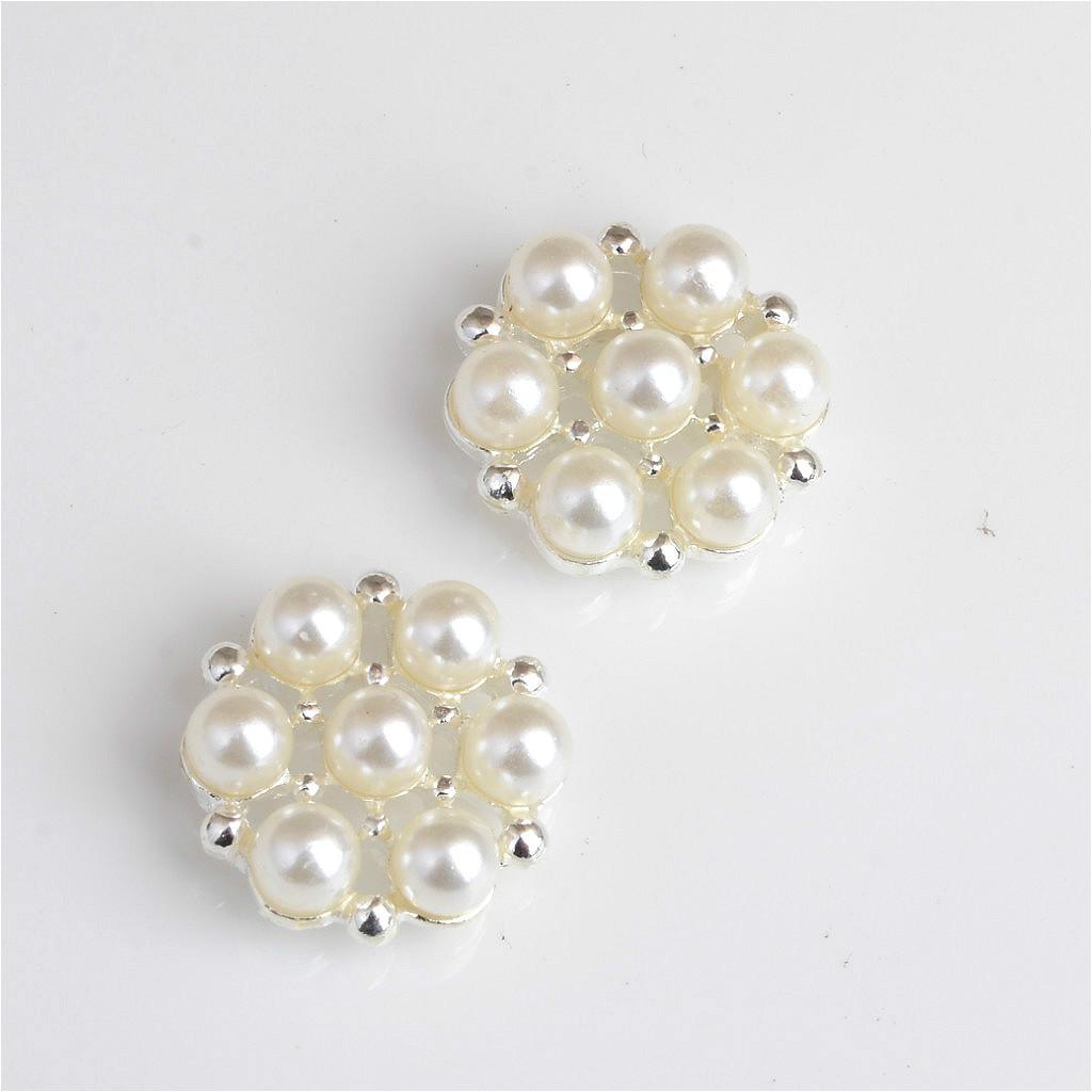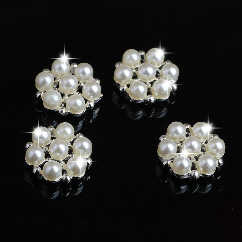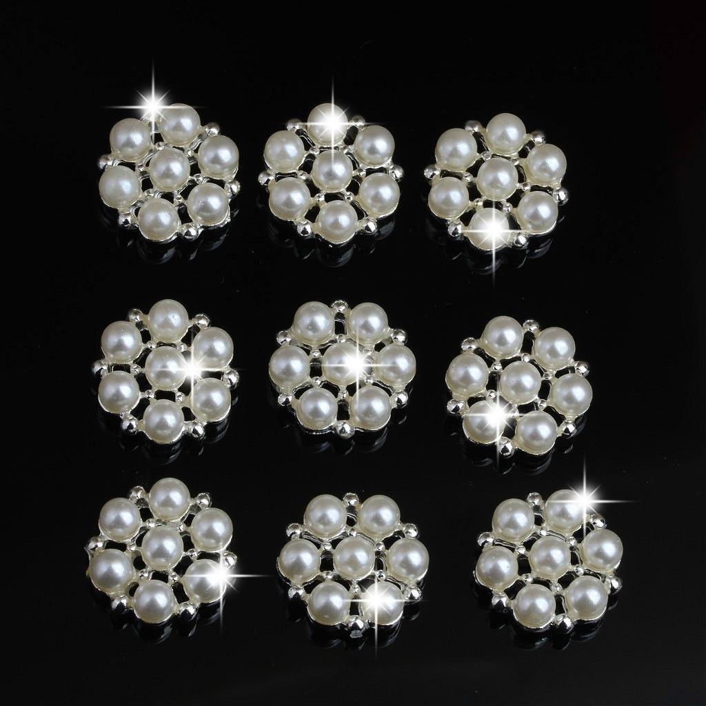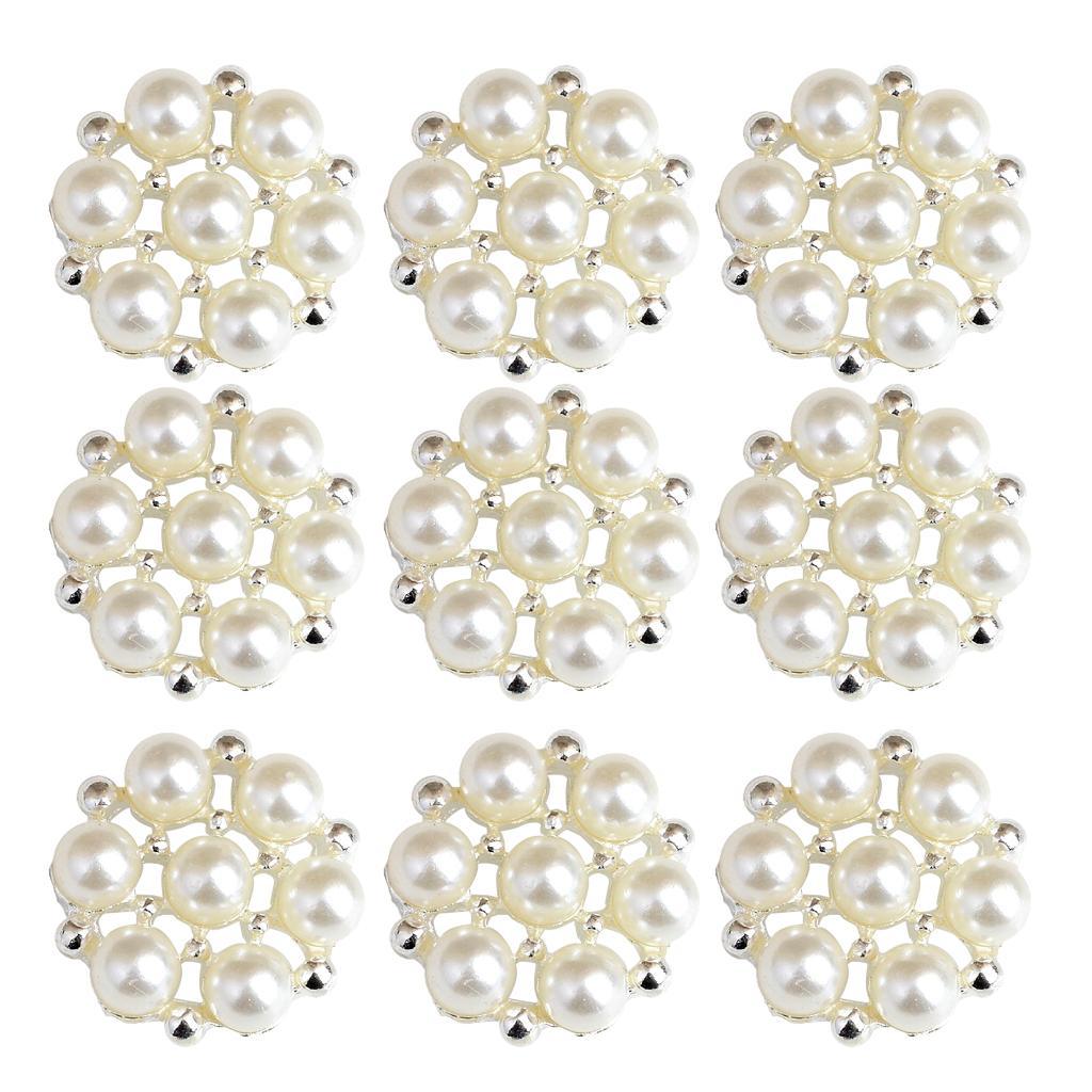 Maxbell 10 Pieces Crystal Diamante Pearl Flower Flatback Buttons for DIY Bridal Ornaments