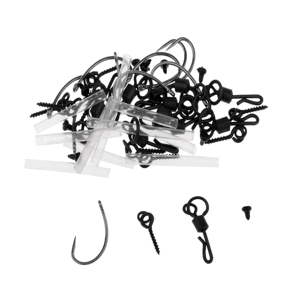 High quality barbless hooks and matt black bait-screws.