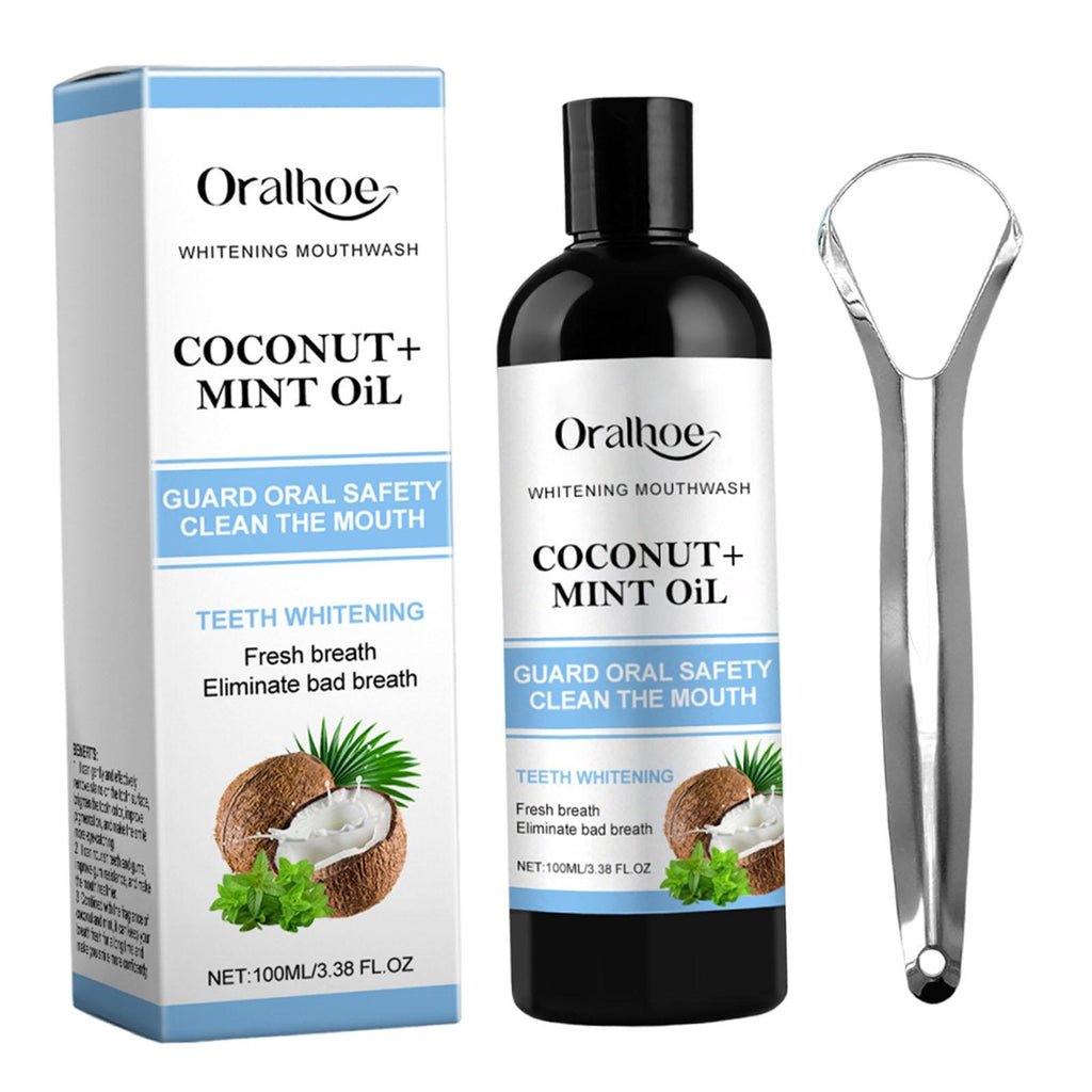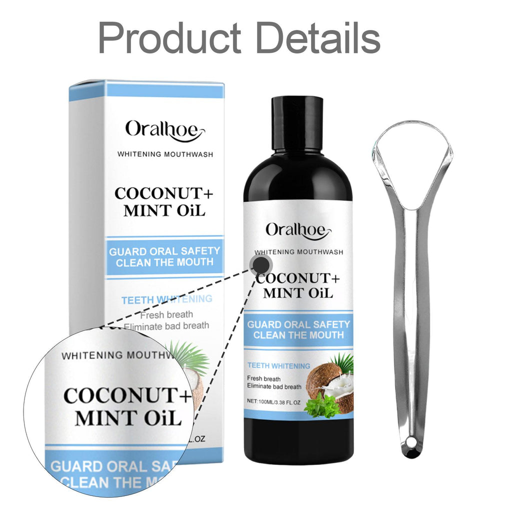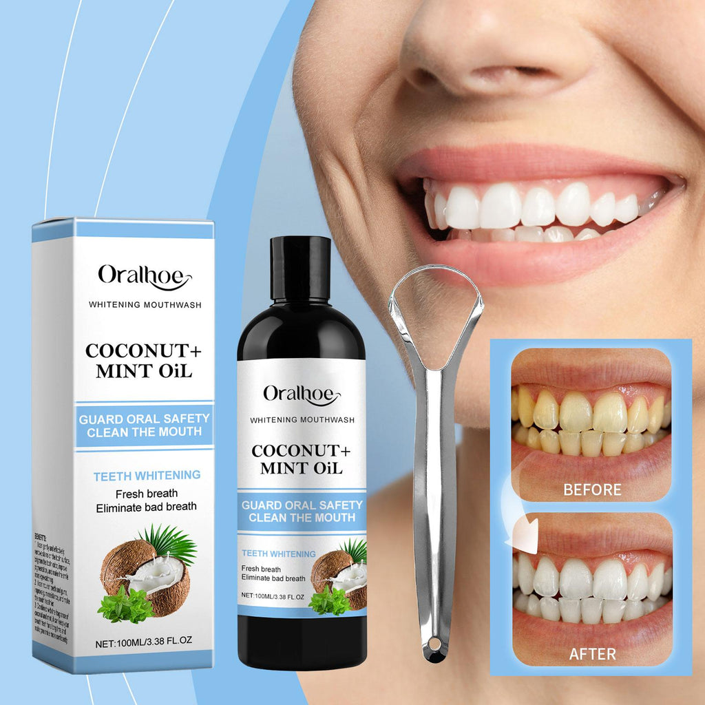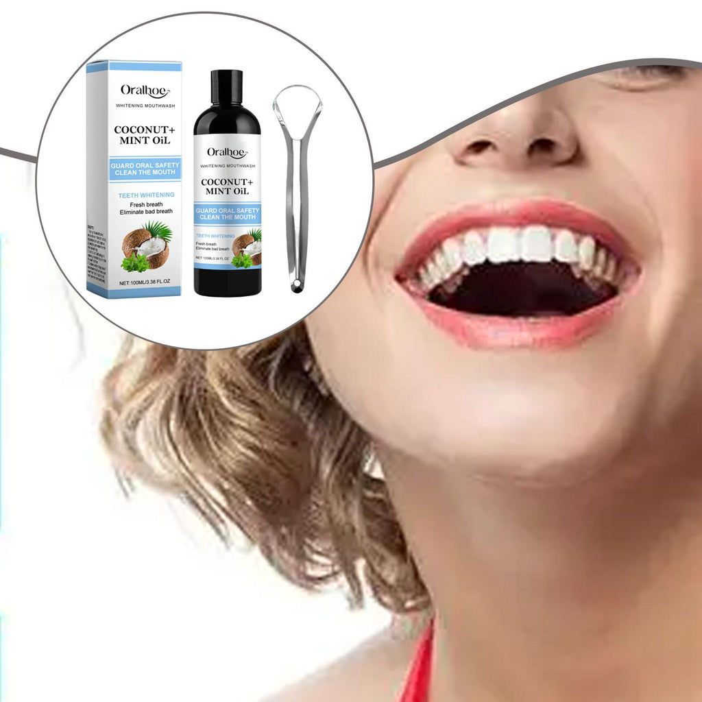 【Complete Set】: Includes a bottle of whitening mouthwash and a tongue scraper for comprehensive oral hygiene care in package