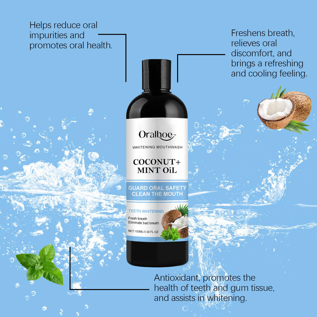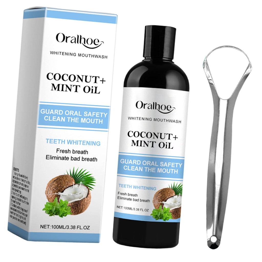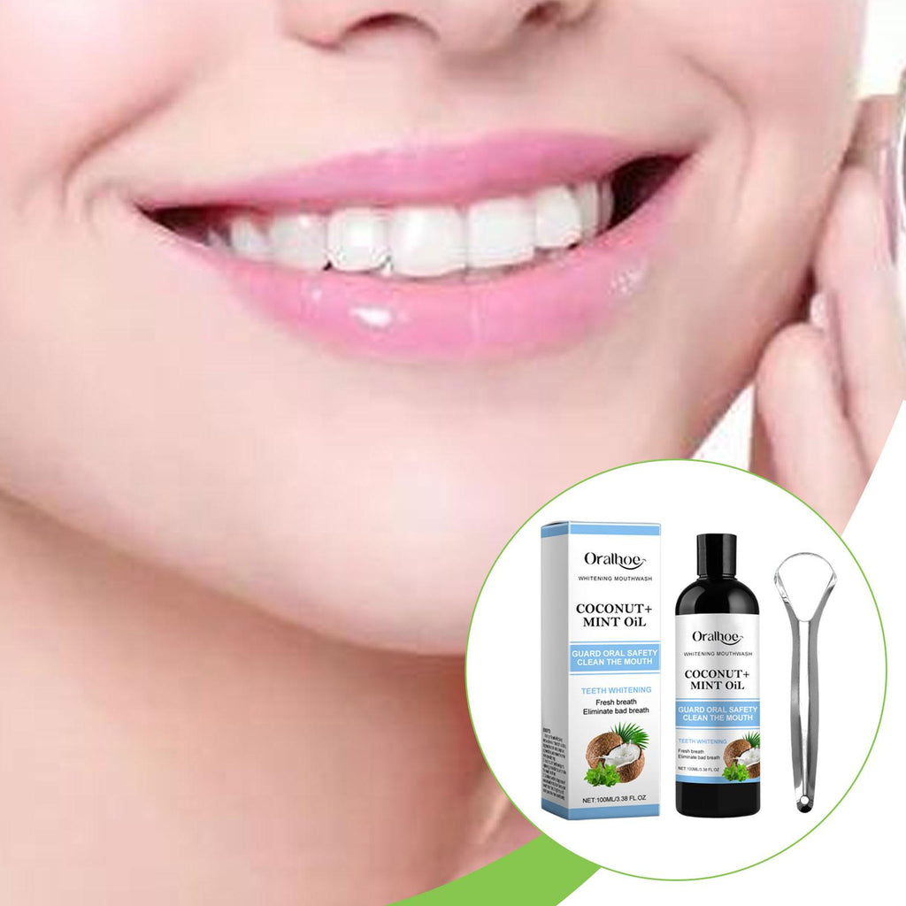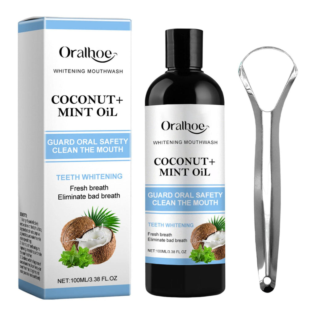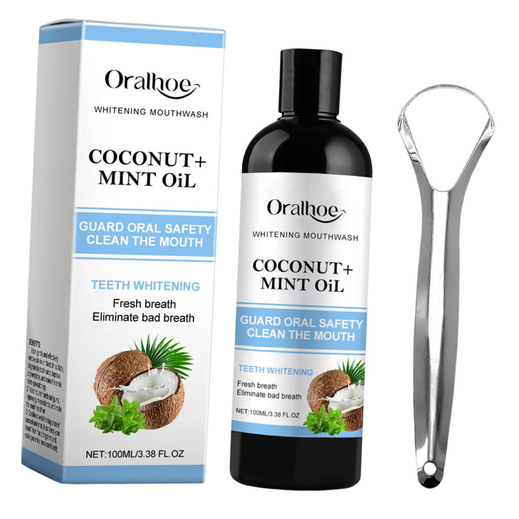 【Complete Set】: Includes a bottle of whitening mouthwash and a tongue scraper for comprehensive oral hygiene care in package
