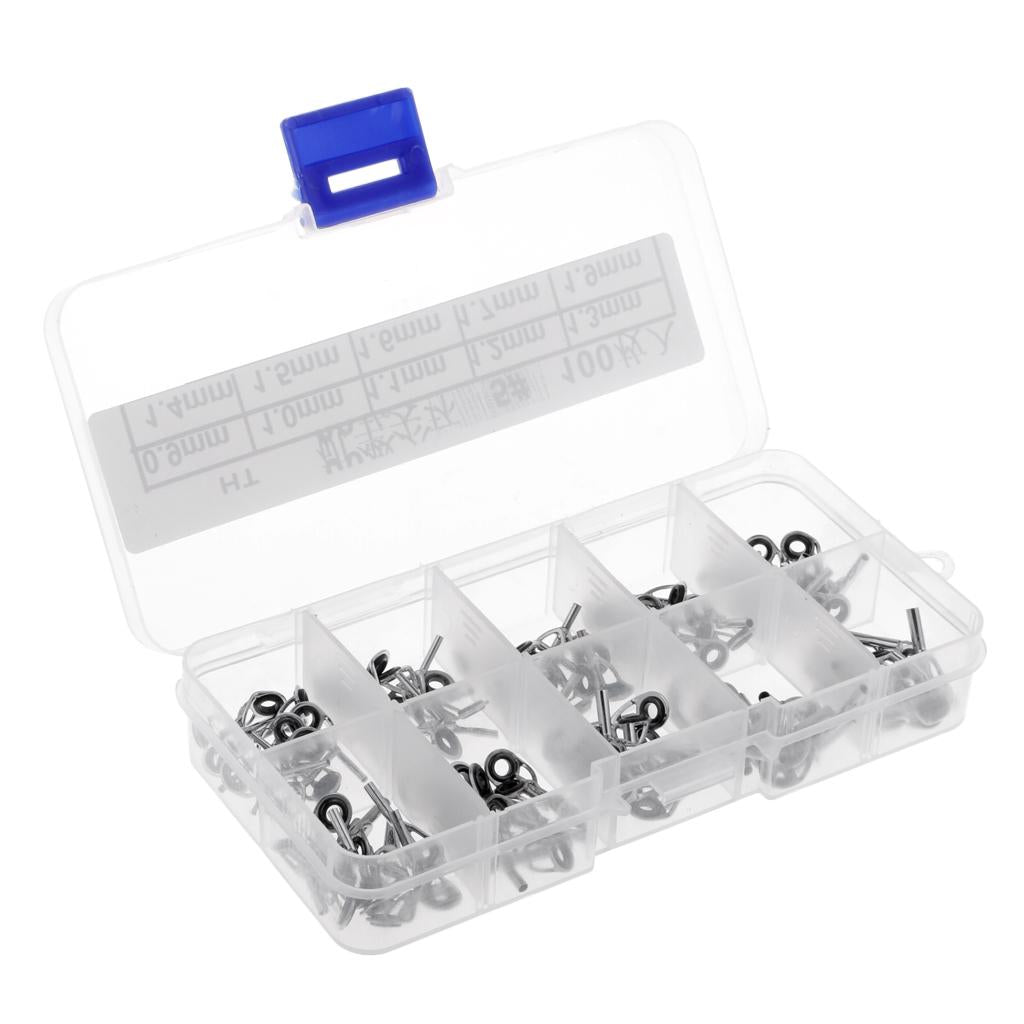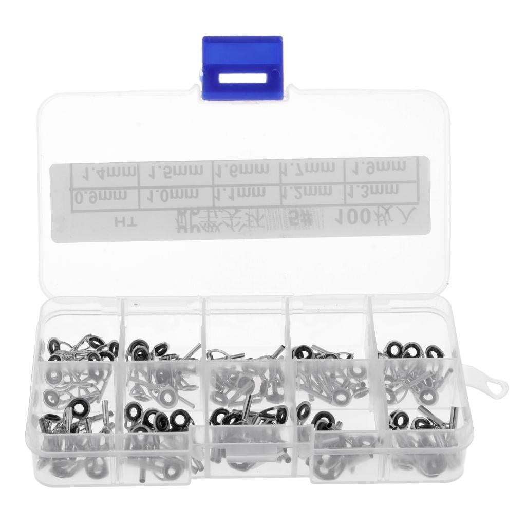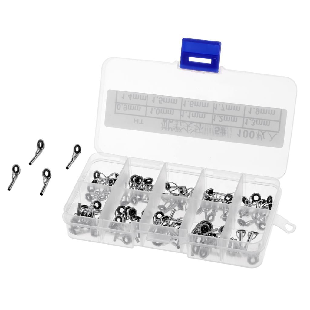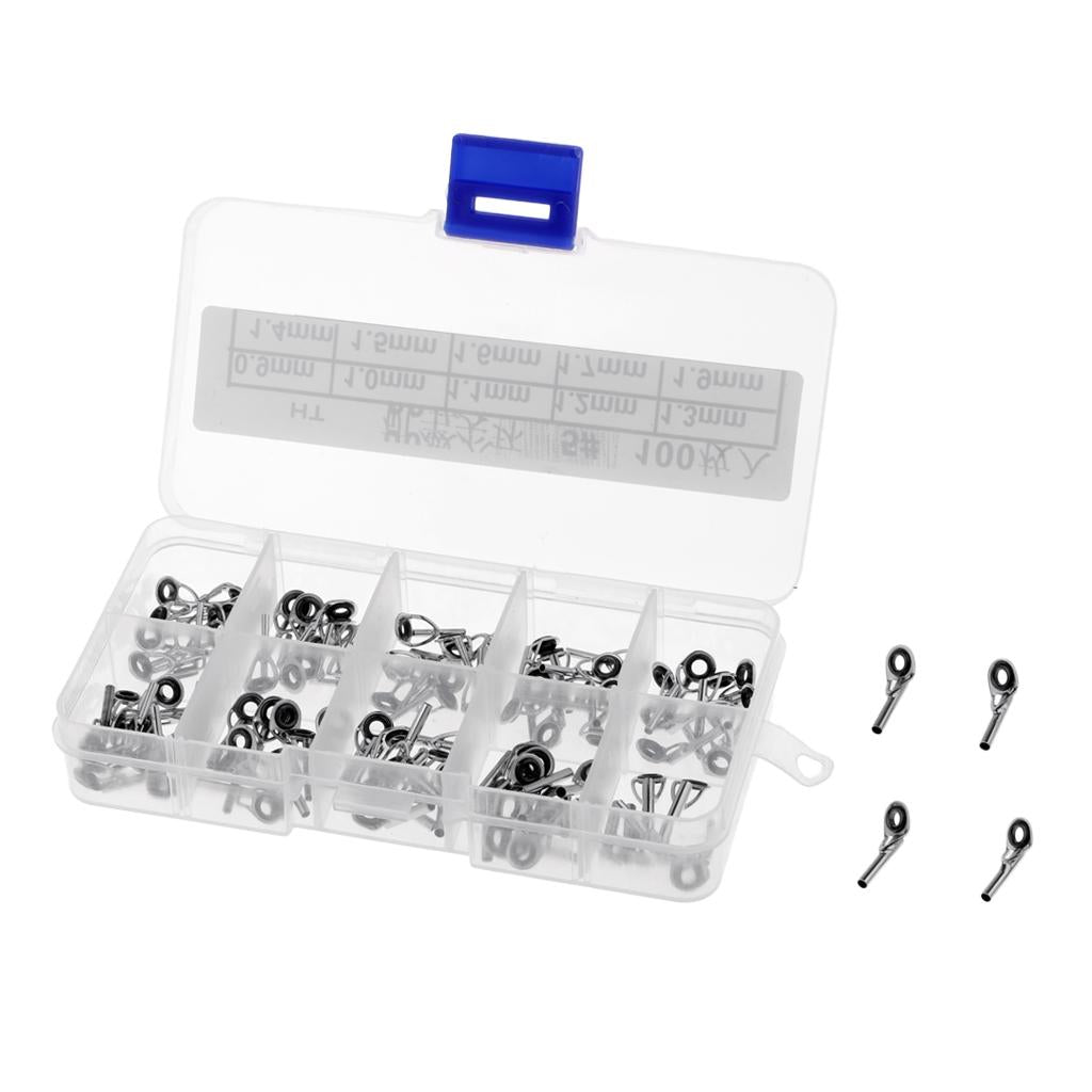 Max 100pcs Rod Repair Kit Mixed Size Fishing Rod Guides Line Ring Tips 0.9-1.9mm