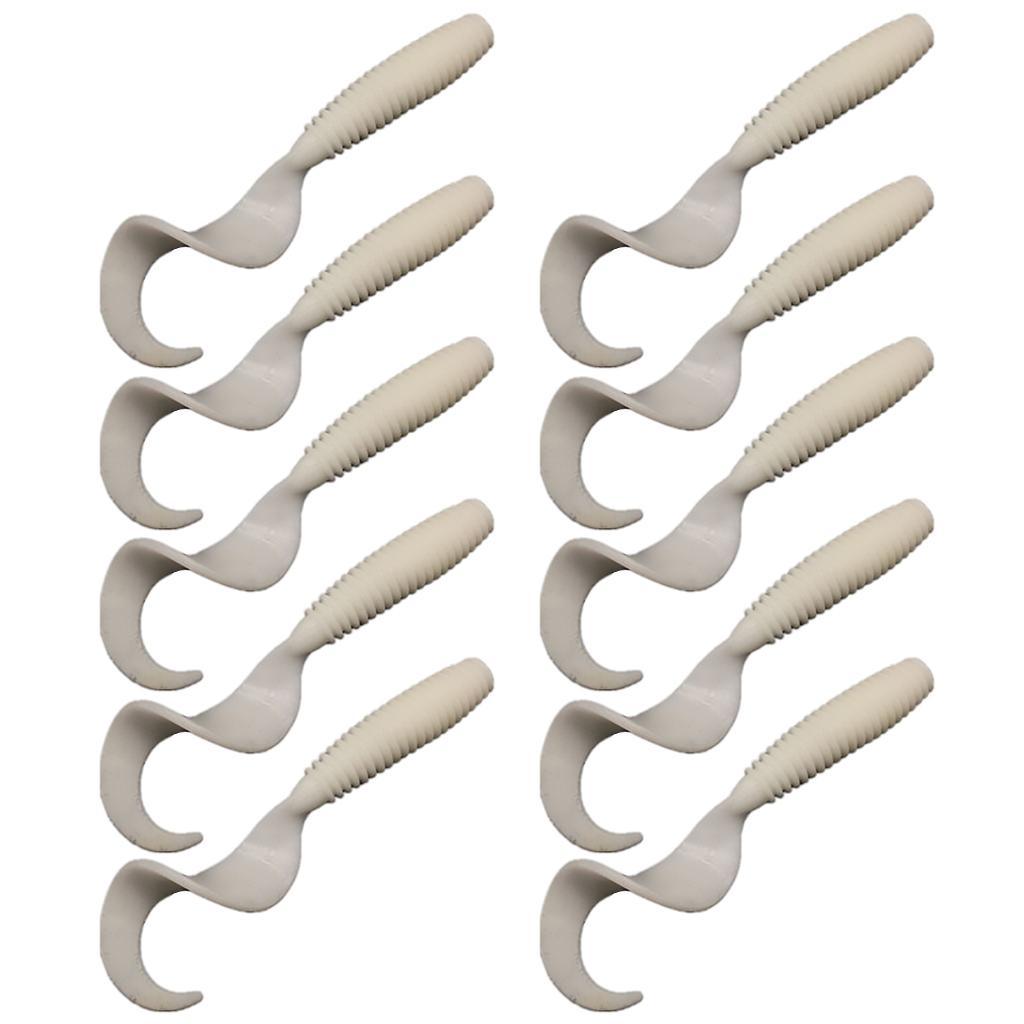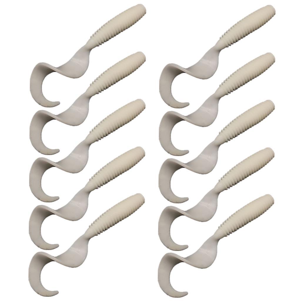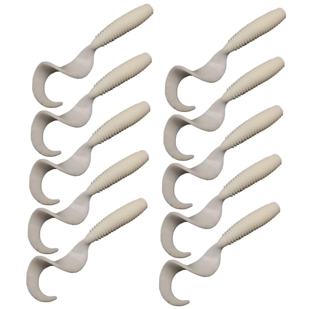 Maxbell Maxbell 10Pc Luminous Plastic Grub Soft Worm Fishing Lure Micro Jig Head Tool White