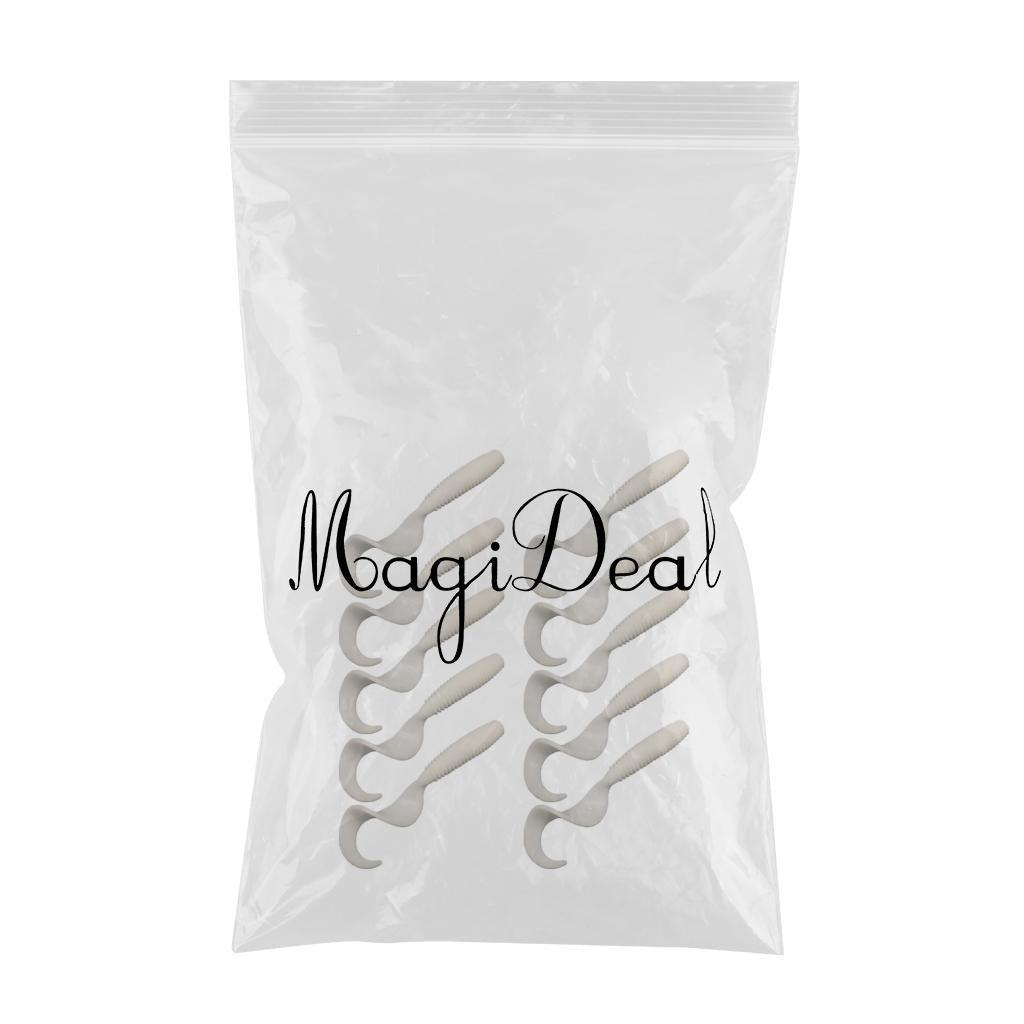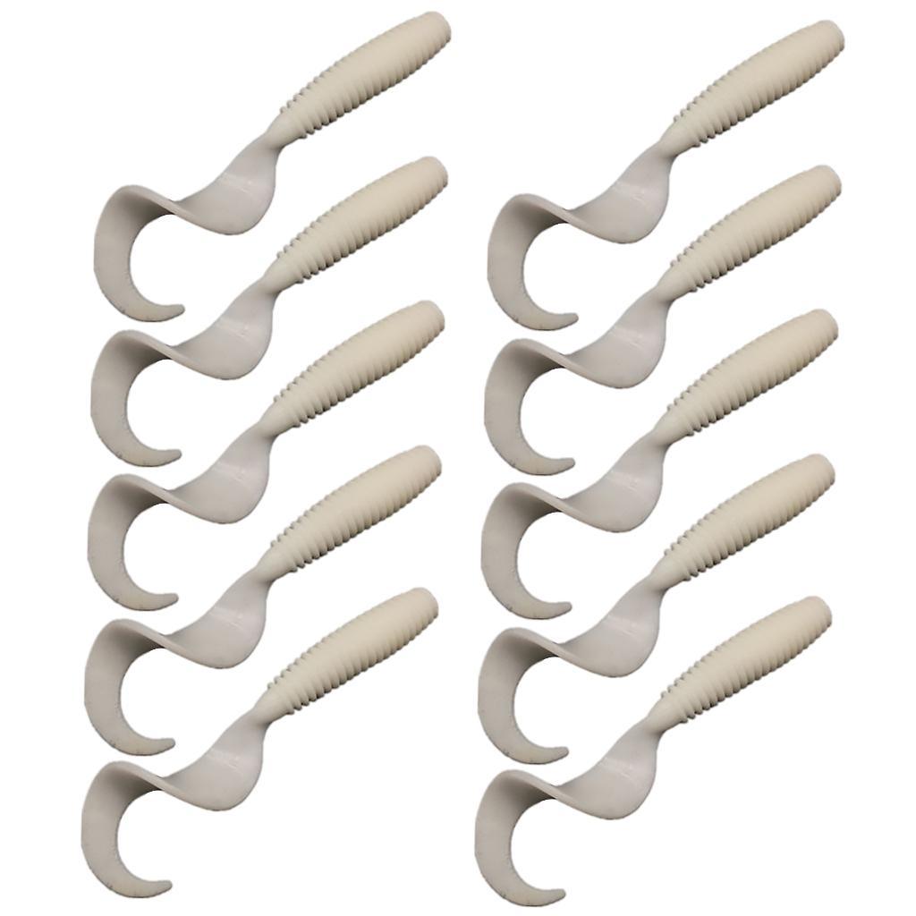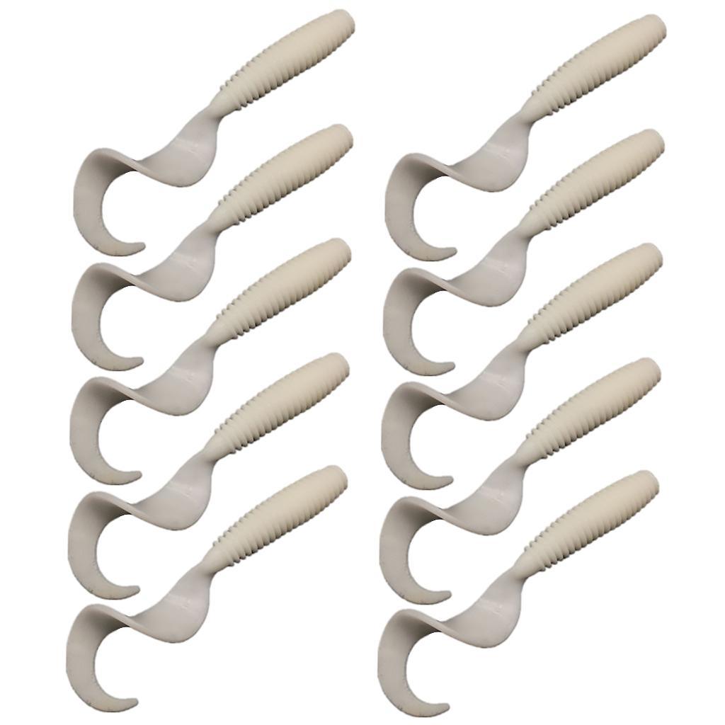 Maxbell Maxbell 10Pc Luminous Plastic Grub Soft Worm Fishing Lure Micro Jig Head Tool White