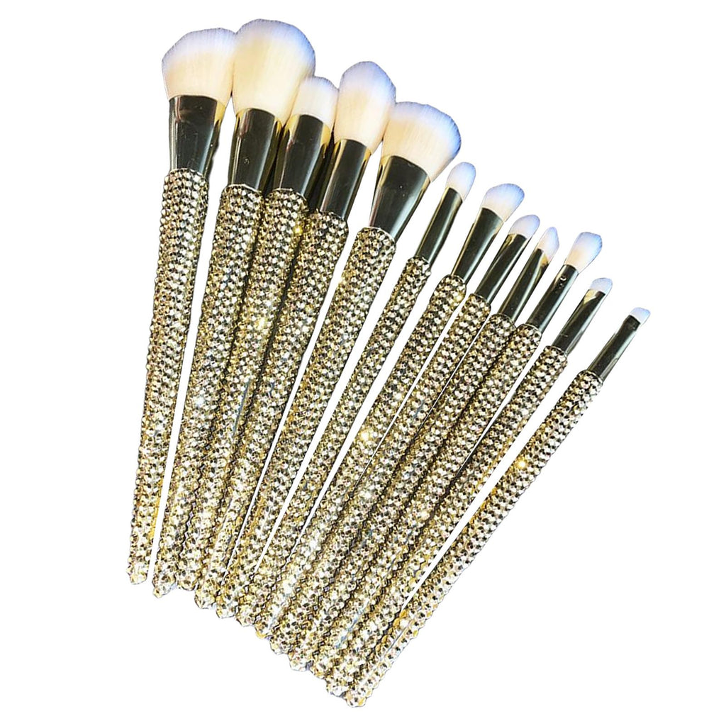 Maxbell 12 Pieces Makeup Brushes Set Diamond-Studded Loose Brush Gifts for Mom Golden