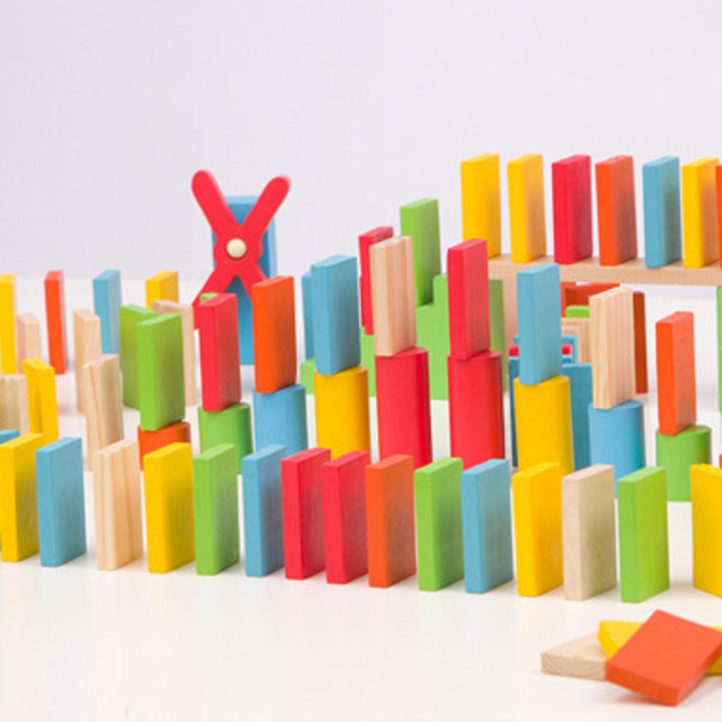 Maxbell 150 Pcs Wooden Dominoes Set for Kids Building Blocks Racing