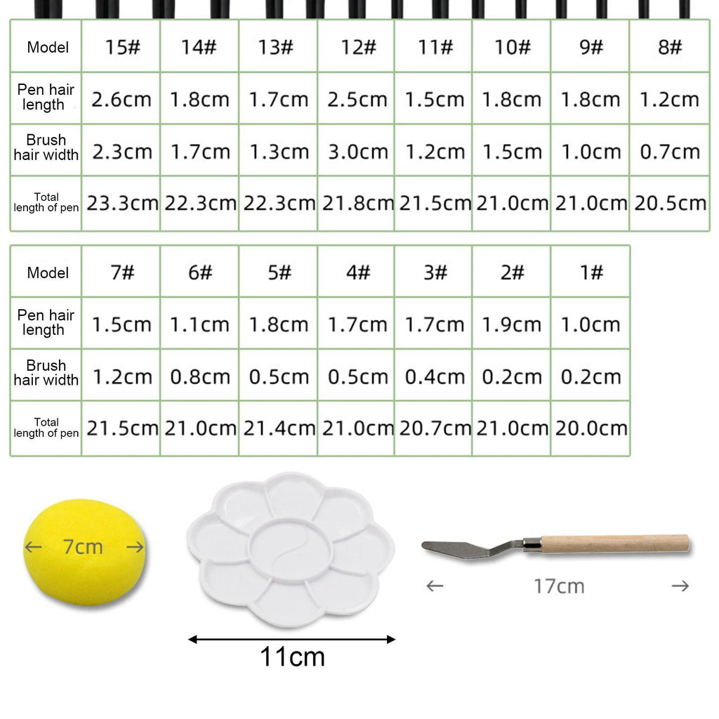 【Package Includes】: This art set includes 15 paintbrushes, a sponge, a palette, a scraper tool, and a canvas bag; all packed neatly in a compact size (approximately 28*14*3cm). Suitable for acrylic or watercolor paintings
